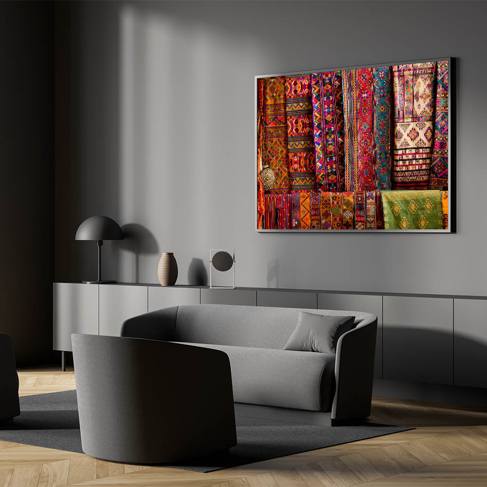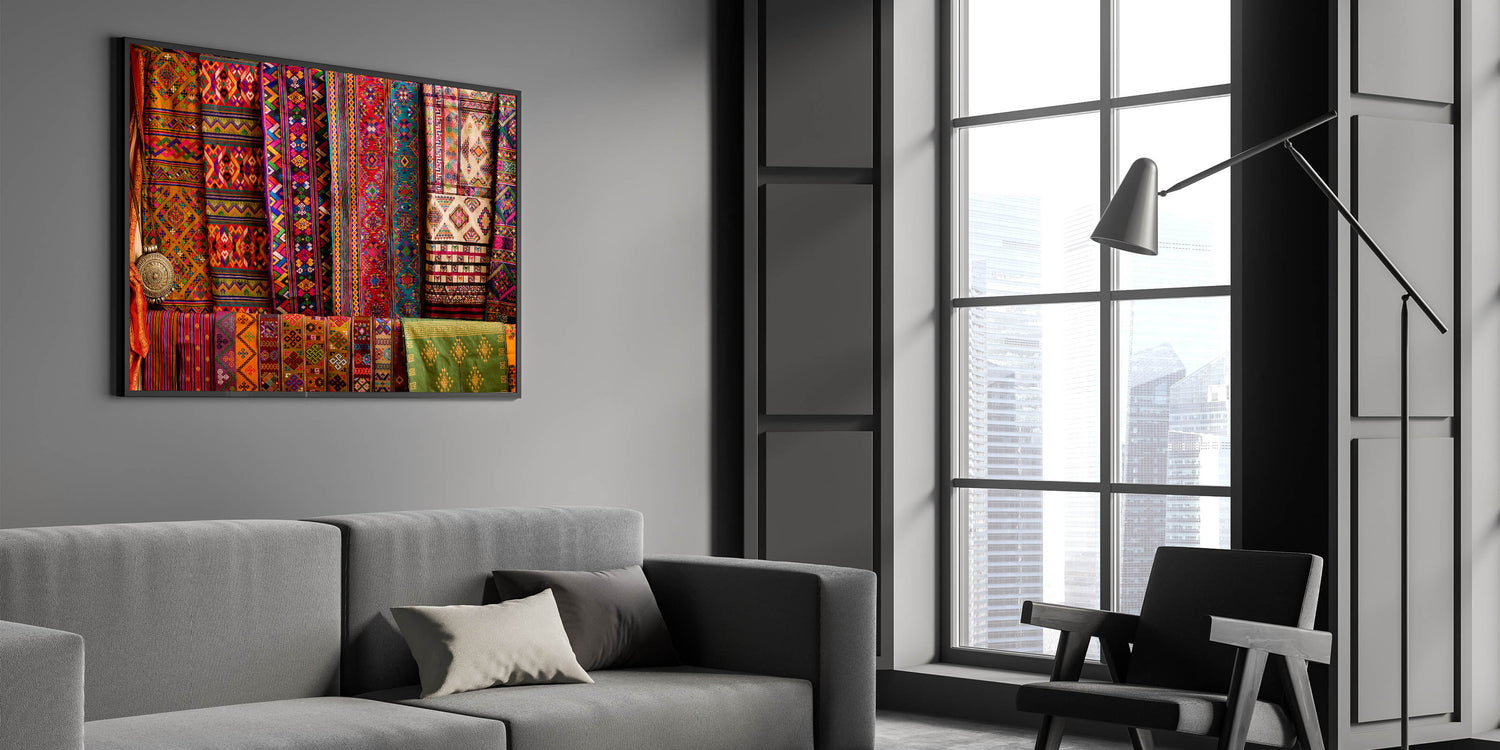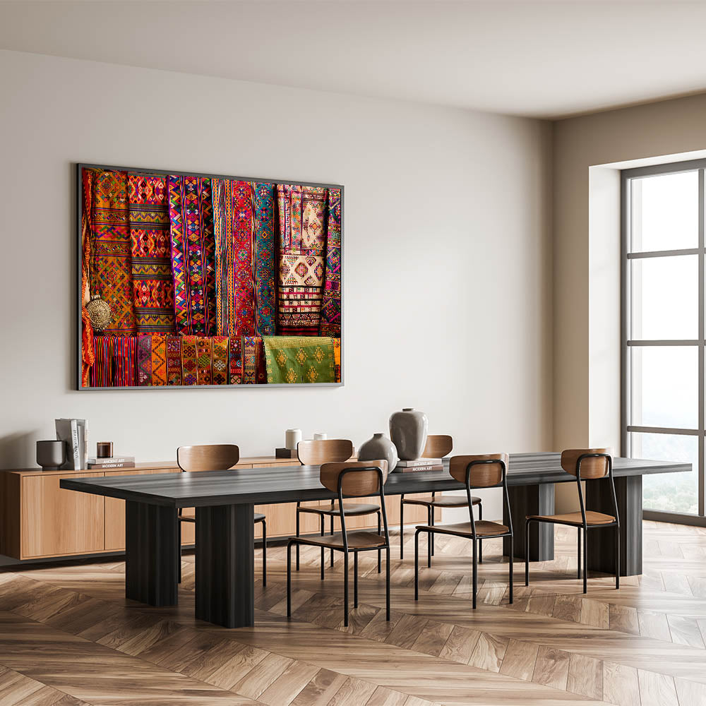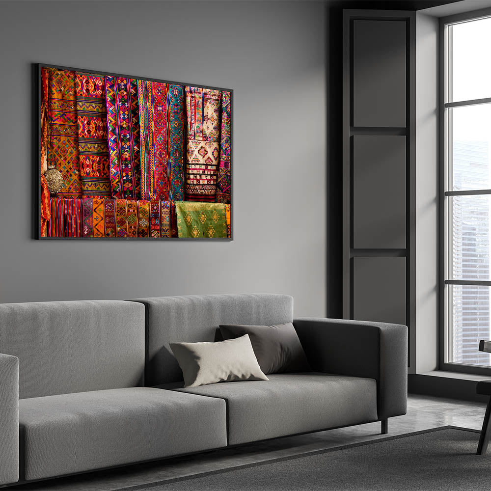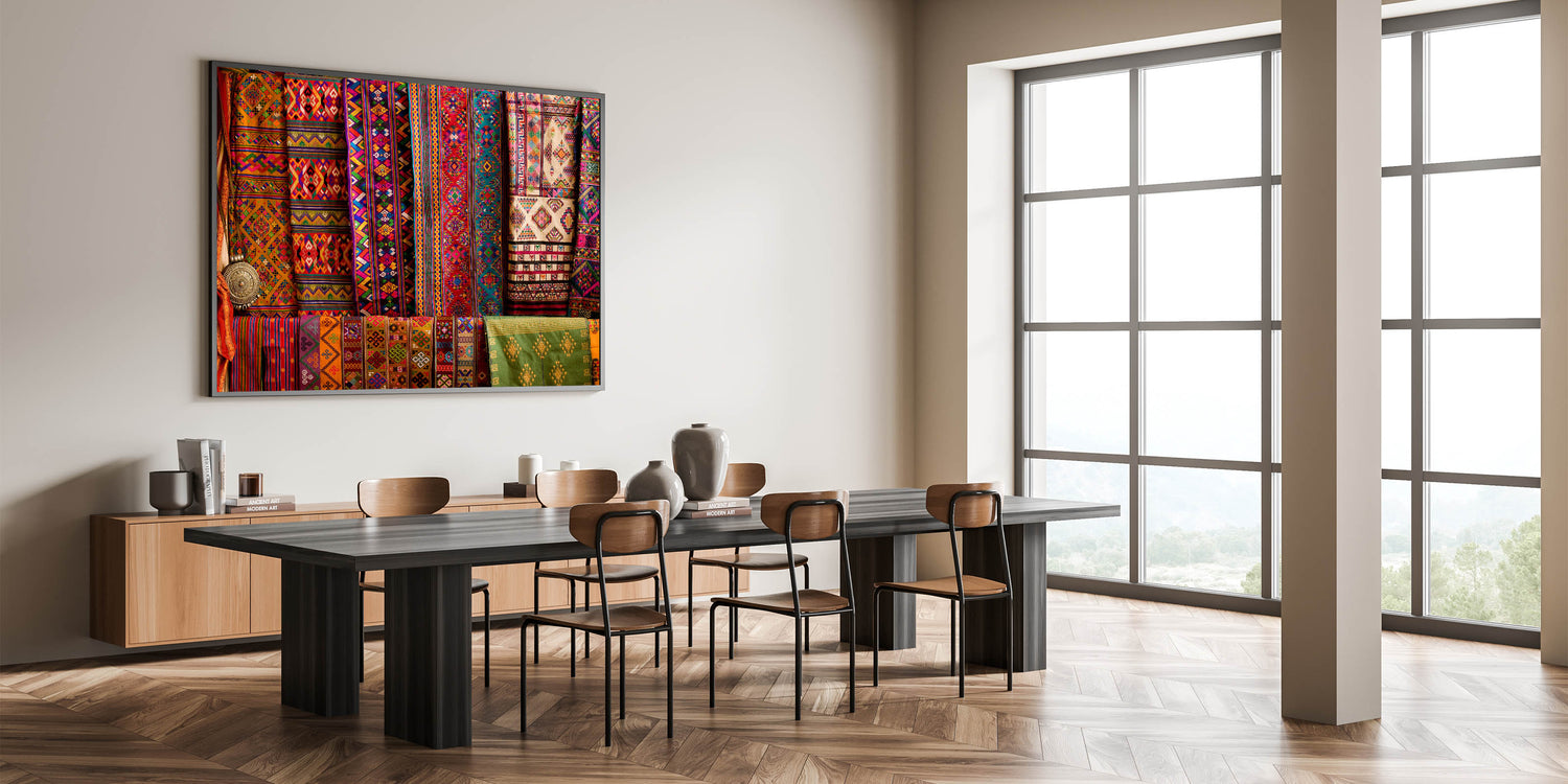 Add a splash of color and cultural richness to your space with this vibrant wall art featuring traditional Bhutanese textiles. The intricate patterns and vivid colors are a celebration of Bhutan's rich artistic heritage, capturing the essence of its cultural identity. This artwork is perfect for those who appreciate the beauty of traditional craftsmanship and want to bring a piece of Bhutan’s cultural legacy into their home.