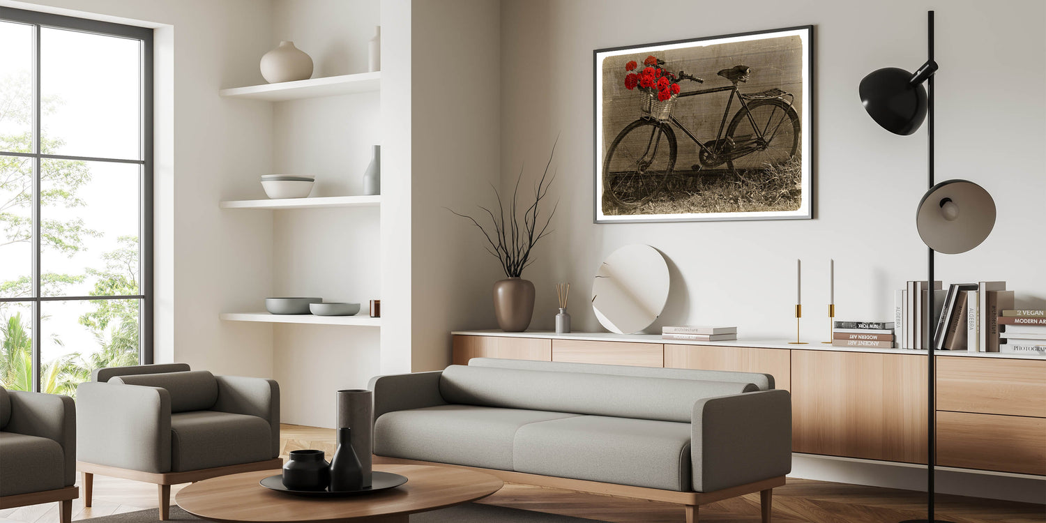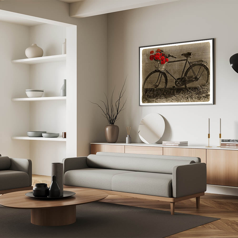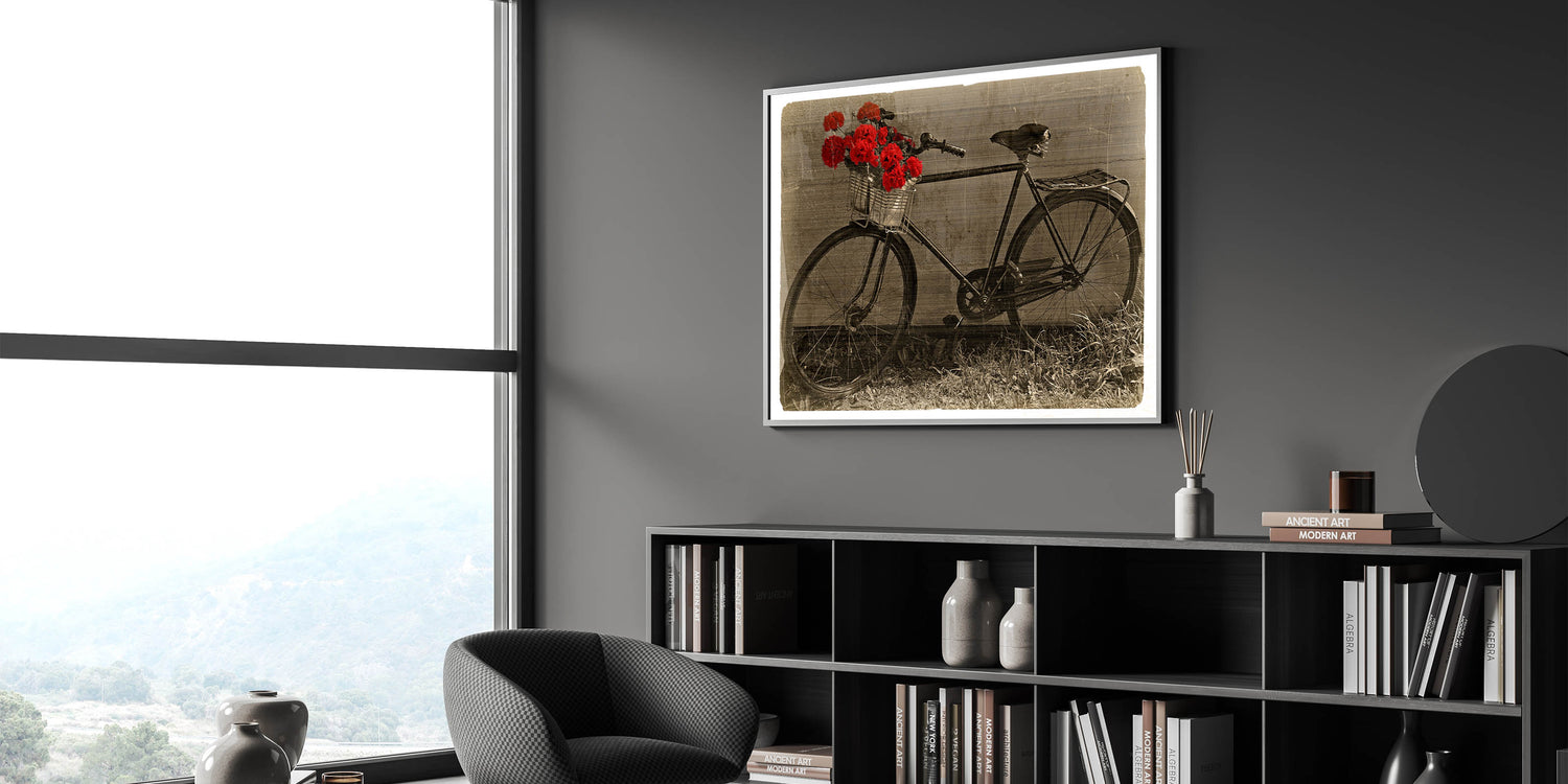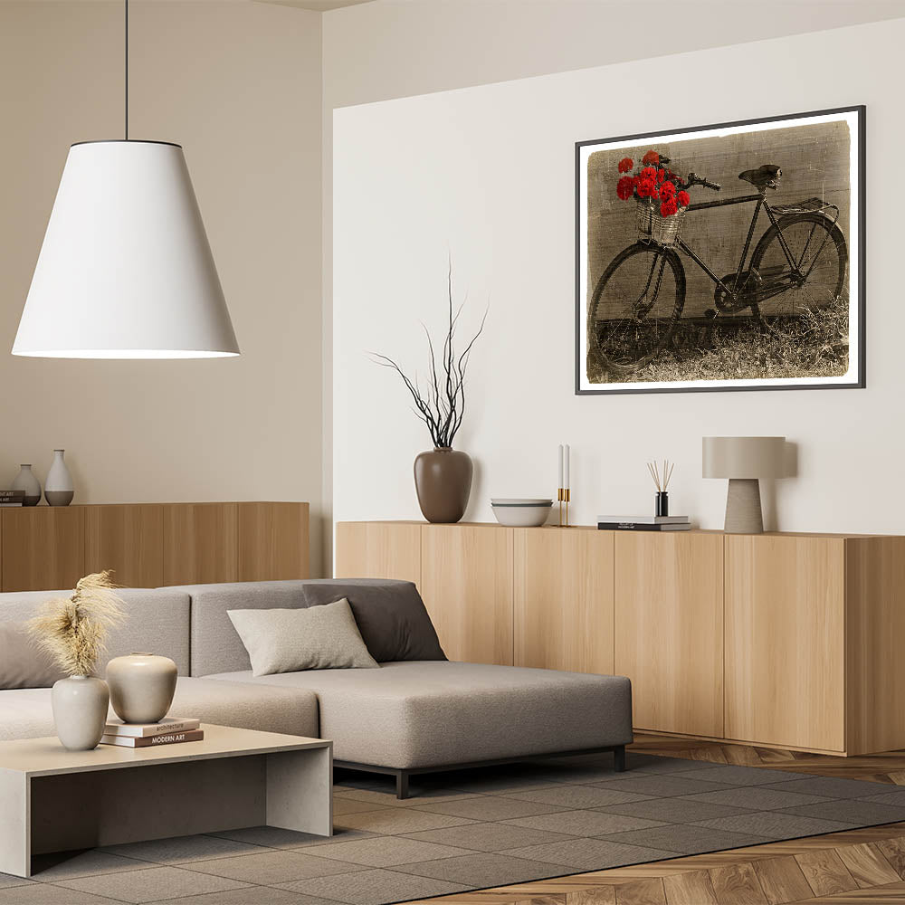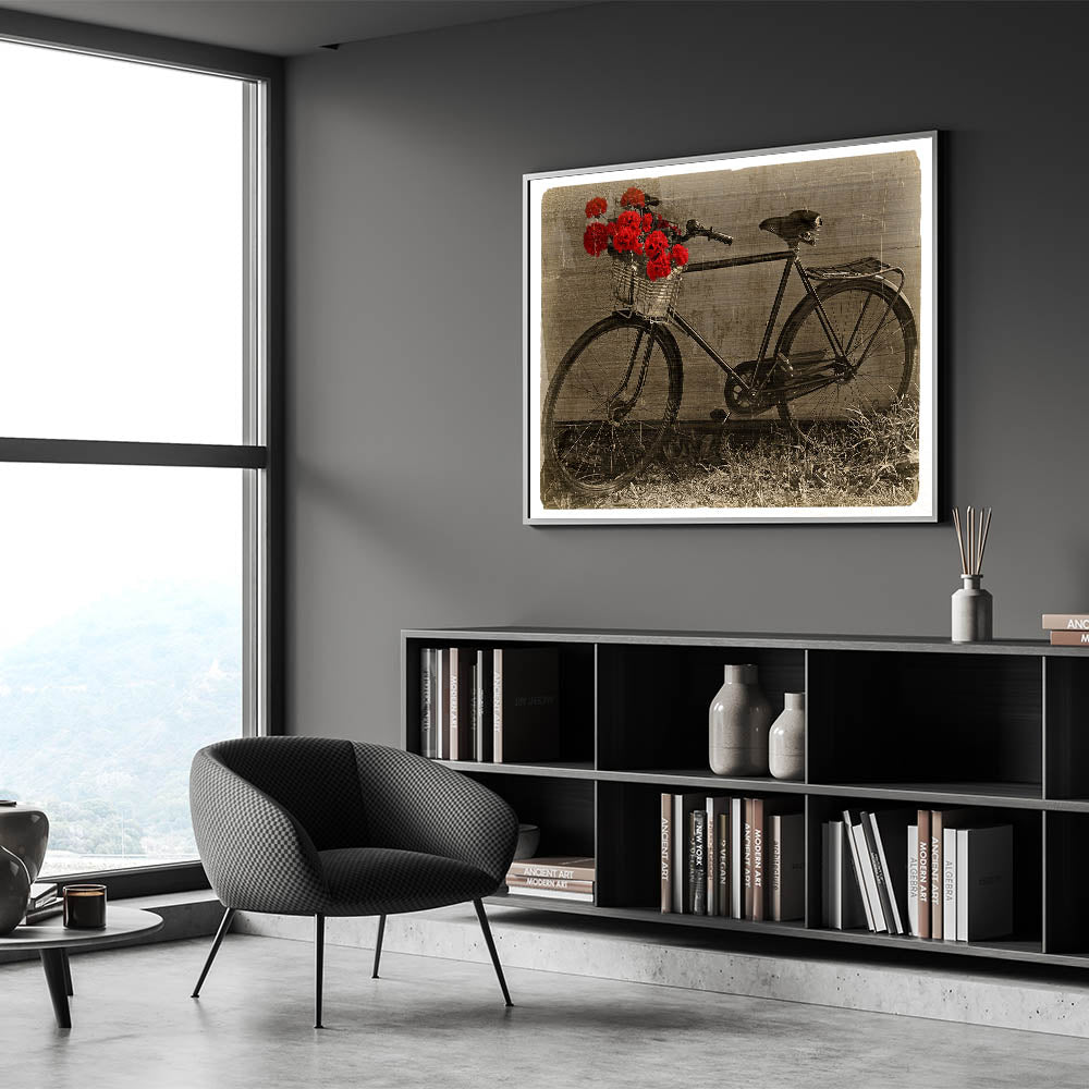 Let this artistic bicycle print transport you to a bygone era, adding a touch of vintage charm and timeless beauty to your space.