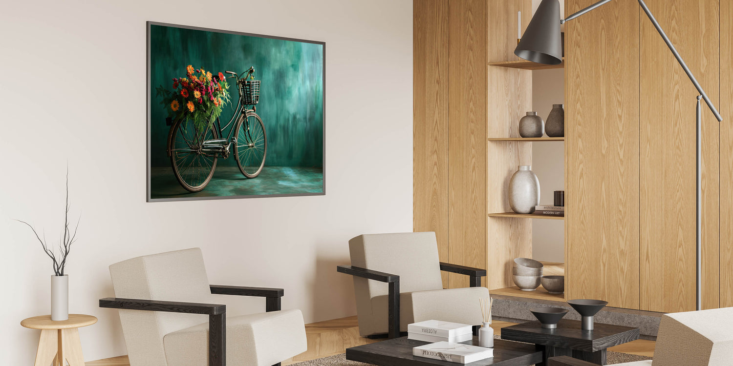 This artwork is part of our exclusive bicycle art collection, designed for those who appreciate the harmony of nature and design. Whether you’re a cycling enthusiast or simply love the beauty of floral arrangements, this piece will bring a lively and sophisticated atmosphere to your home. Explore more cycling decor ideas and let this artwork inspire a fresh and elegant transformation in your space.