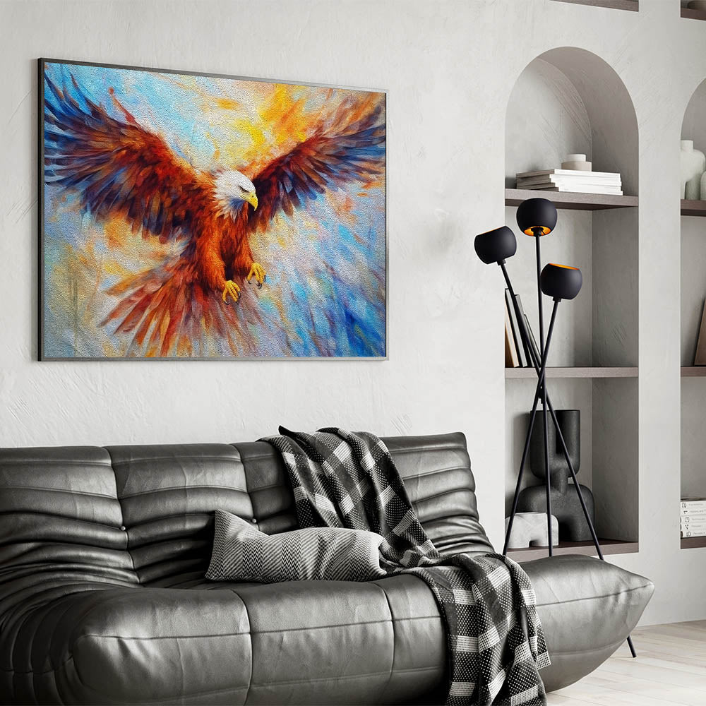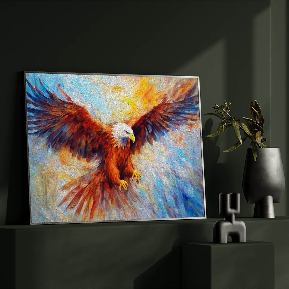 Fiery Eagle Wall Art - Dynamic Birds of Prey Colorful Canvas Print