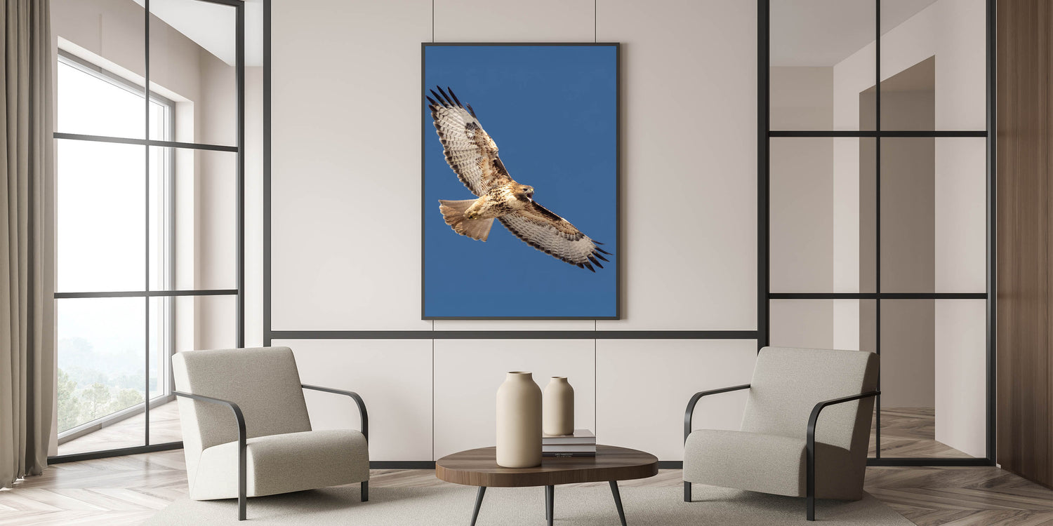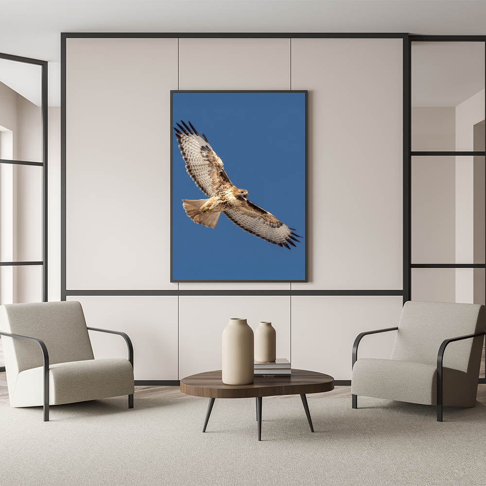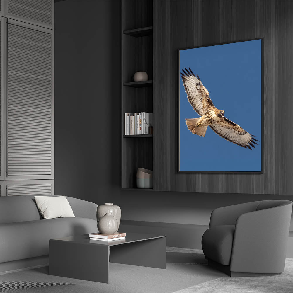 Capture the essence of nature’s power and grace with this Graceful Birds of Prey Wall Art. This stunning piece features a majestic hawk soaring through the clear blue sky, its wings fully spread in a moment of sheer freedom. The sharp detail of the hawk’s feathers against the vibrant sky creates a striking contrast, making this artwork a bold statement piece for any room.