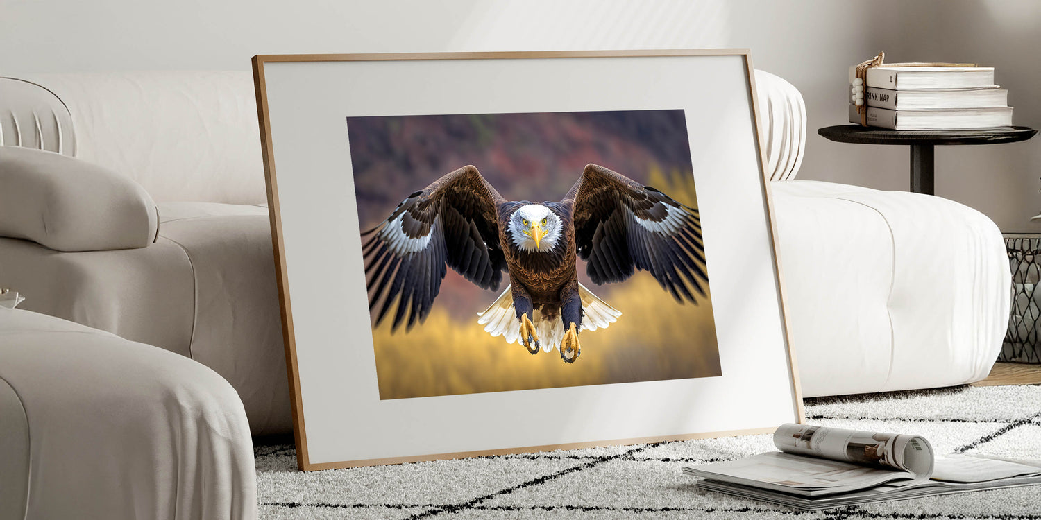 This stunning birds of prey wall art is perfect for those who appreciate the wild beauty and power of nature. The high-quality bald eagle photograph serves as an inspiring focal point in any living room, office, or study, adding a touch of nature's majesty to your home.