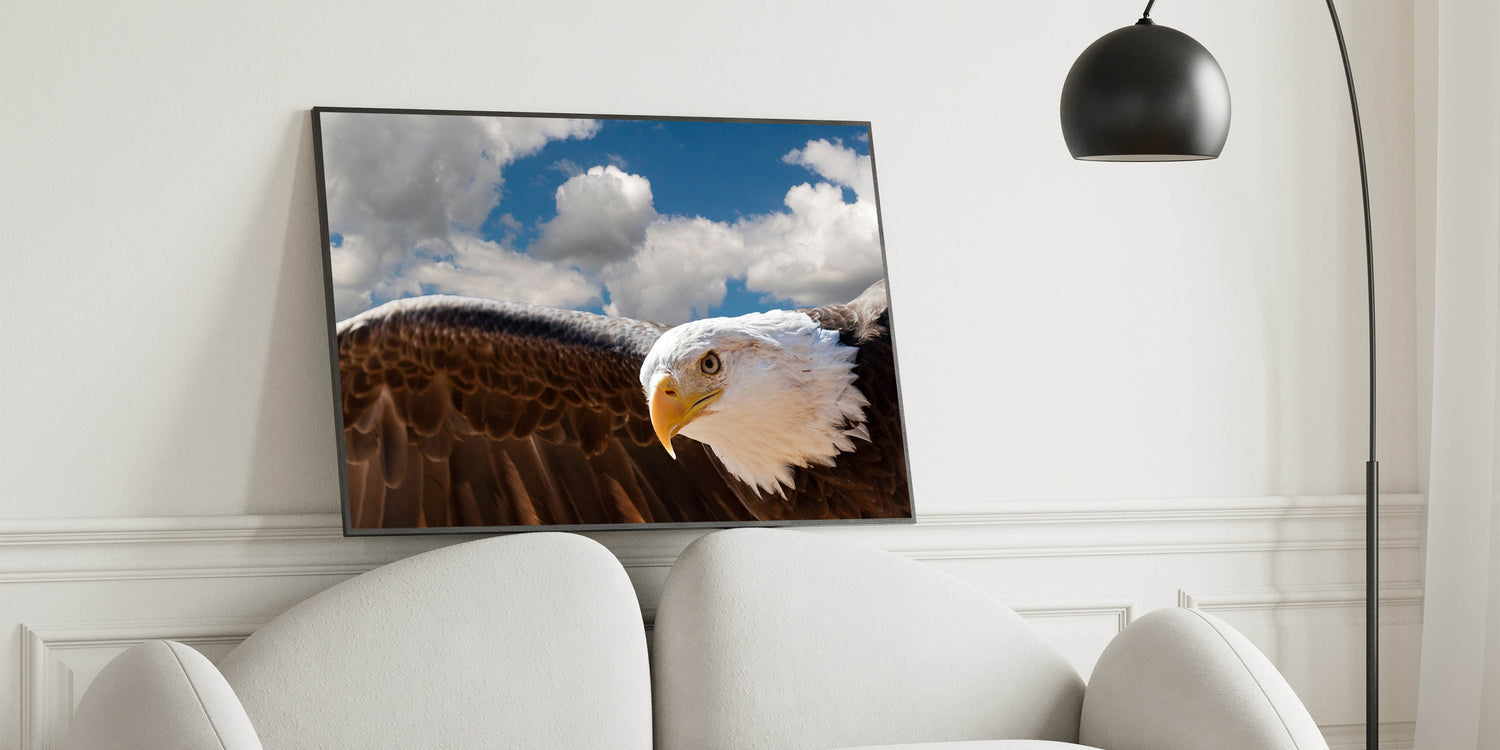 - Vivid and detailed print that brings out the textures and colors of the eagle and sky.