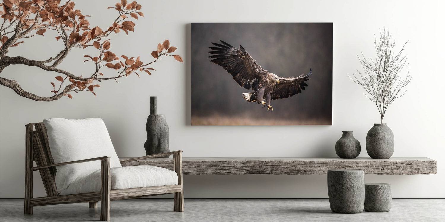 - Dynamic Imagery: The eagle's intense focus and powerful posture bring a sense of energy and movement to any room.