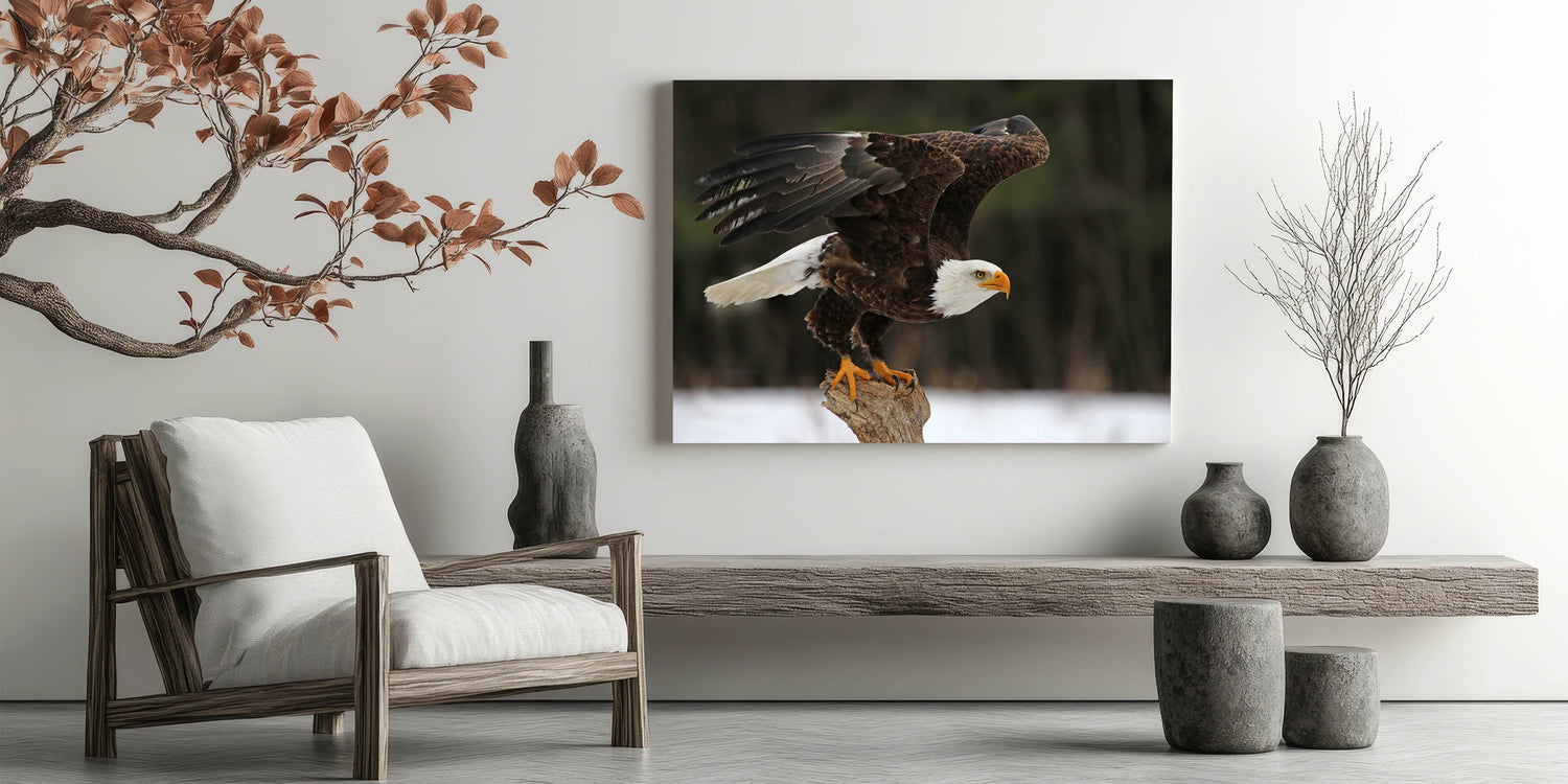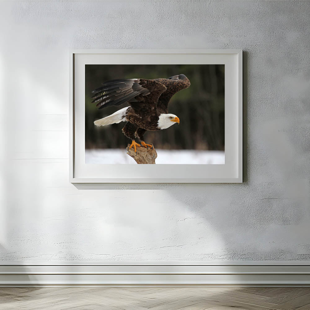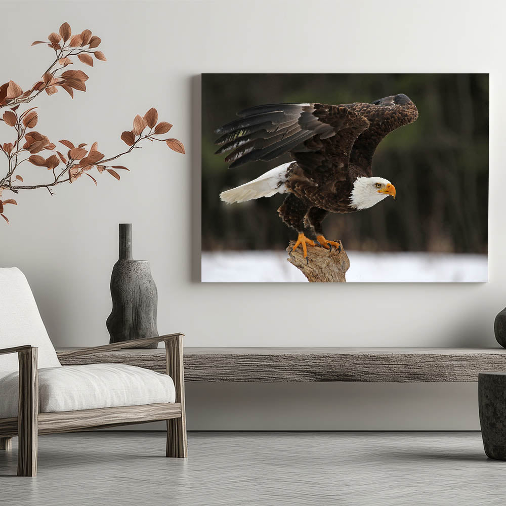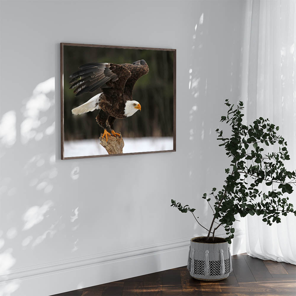 Capture the essence of freedom and strength with this "Stunning Bald Eagle Wall Art." This breathtaking artwork features a majestic bald eagle, poised for flight, perfectly embodying the power and grace of one of nature's most iconic birds of prey. The photograph captures every detail, from the eagle's piercing gaze to the powerful spread of its wings, making it an awe-inspiring addition to any home or office.