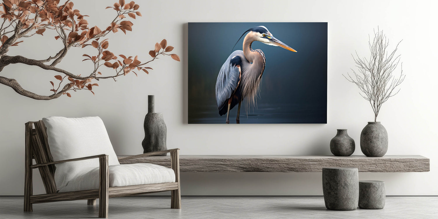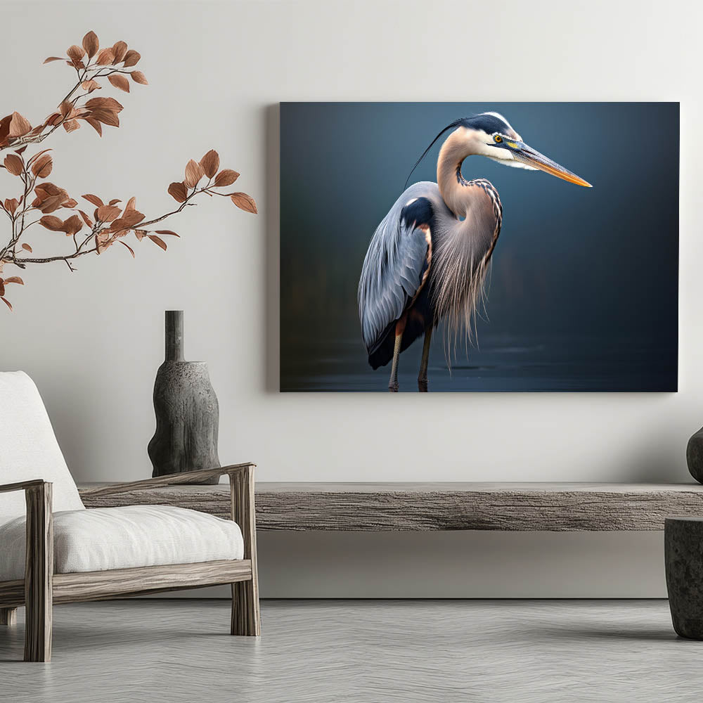 Elevate your home decor with the serene beauty of this Elegant Heron at Dusk Canvas Art. This stunning artwork captures the majesty of a heron poised gracefully against a dusky backdrop. The deep, muted tones create a sense of calm and tranquility, making it a perfect piece for any space where relaxation and elegance are key.