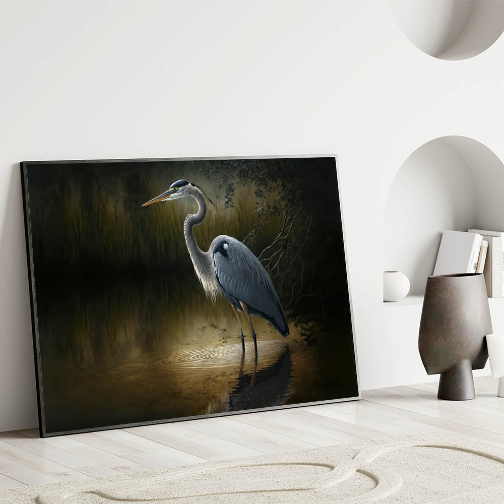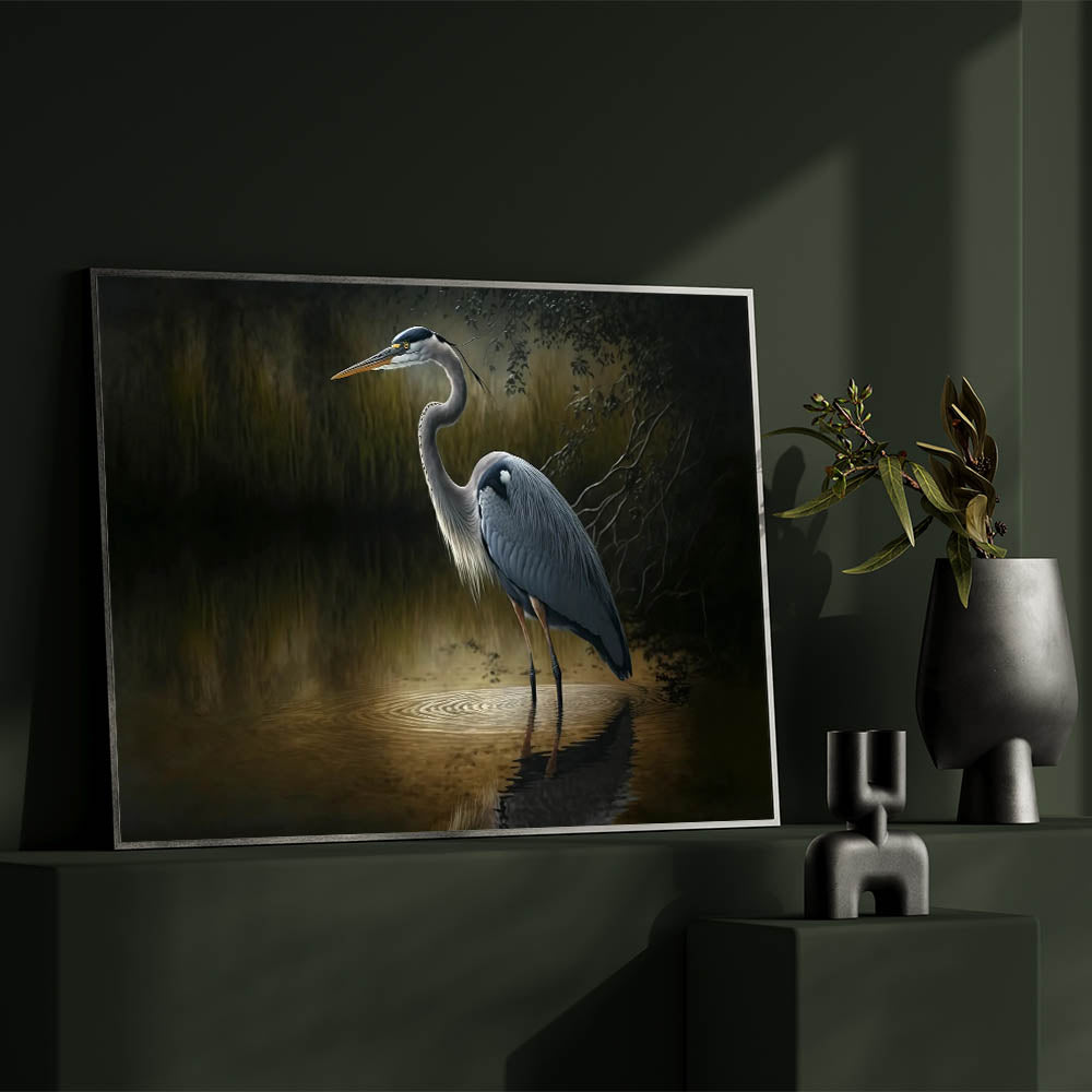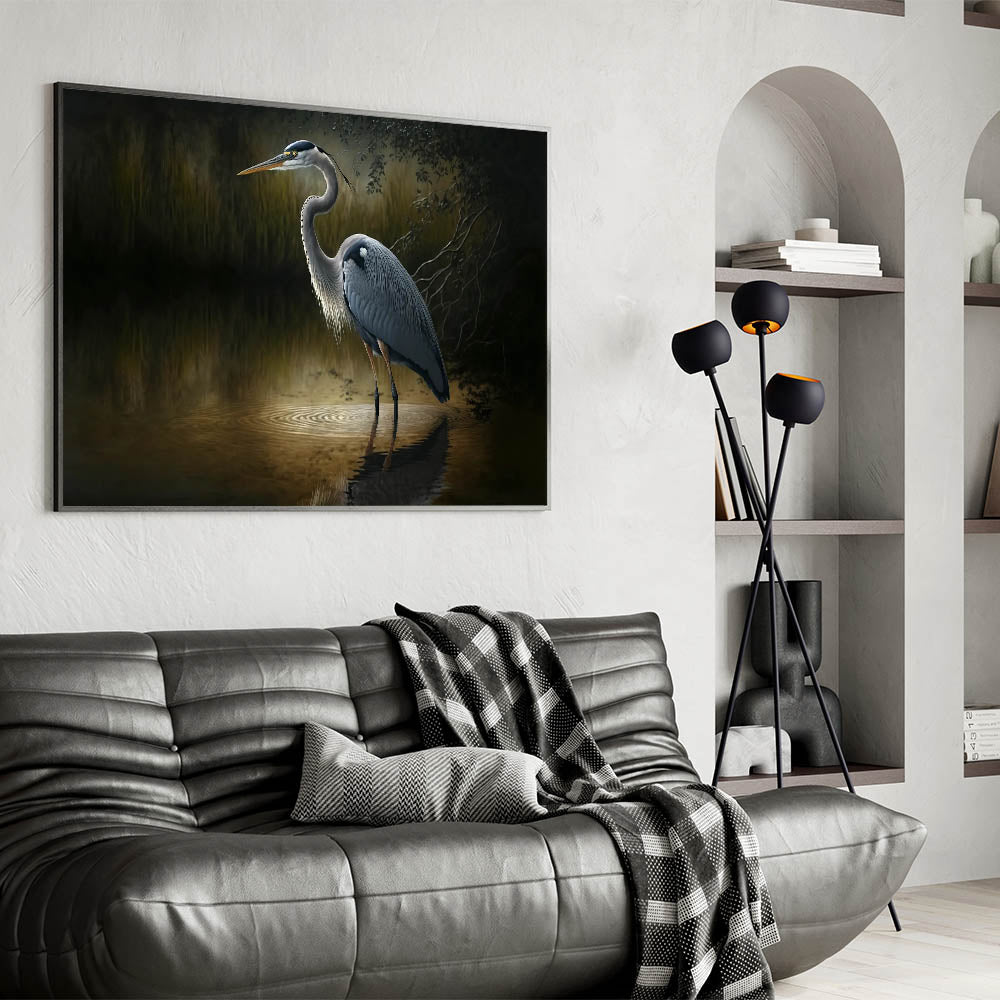 Elevate your home decor with this Majestic Heron in Evening Light Canvas Art. Whether as a statement piece or part of a gallery wall, this artwork will bring the tranquil beauty of nature into your home. Shop now to add this exquisite heron art to your collection.