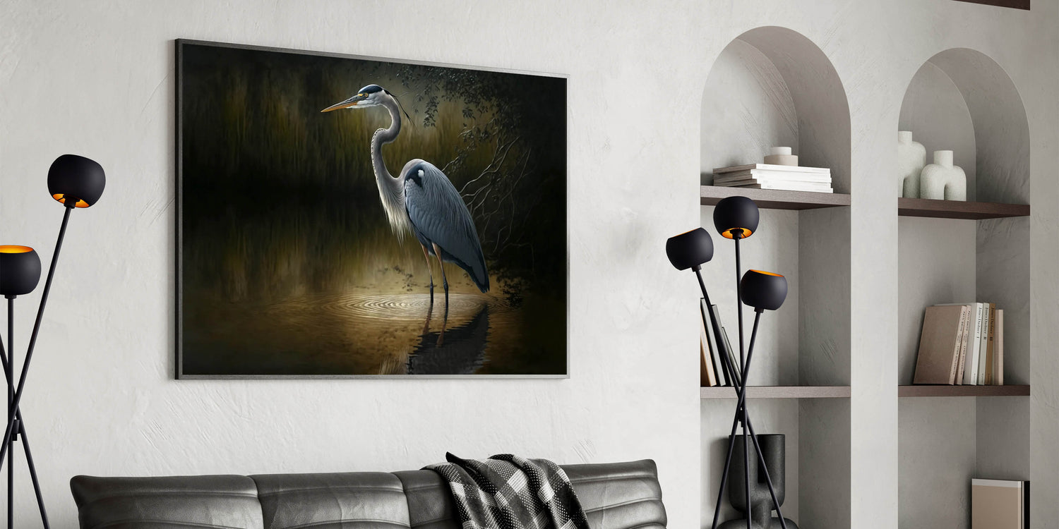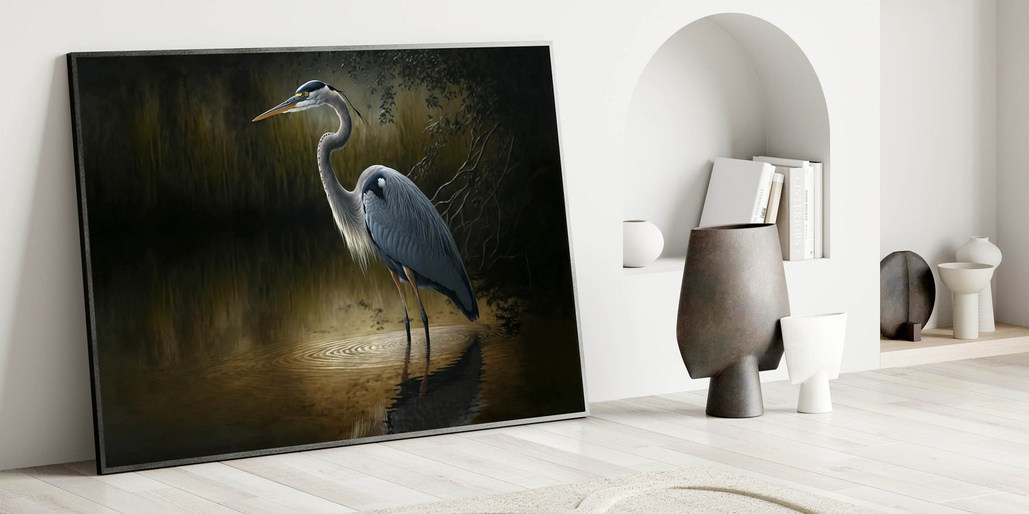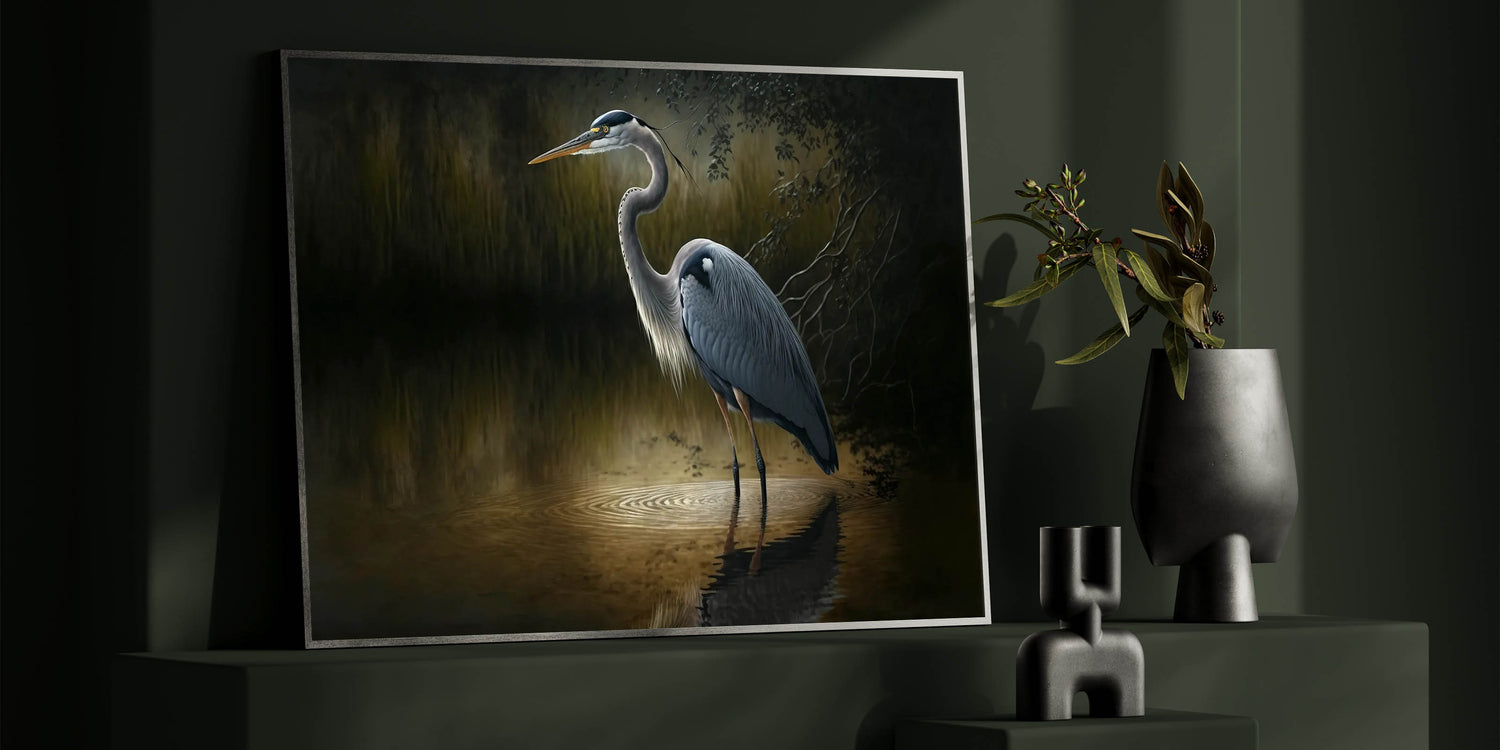 Elevate your home decor with this Majestic Heron in Evening Light Canvas Art. Whether as a statement piece or part of a gallery wall, this artwork will bring the tranquil beauty of nature into your home. Shop now to add this exquisite heron art to your collection.