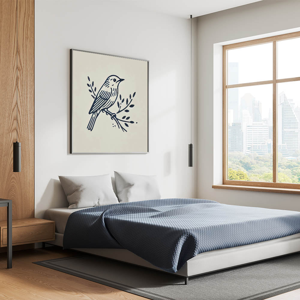 Elevate your space with the clean and elegant simplicity of this Minimalist Garden Birds Wall Art. Featuring a stylized bird illustration rendered in bold, clean lines, this artwork is perfect for those who appreciate modern, minimalist design. The monochrome palette and sleek lines create a sense of calm and sophistication, making this piece a versatile addition to any room.