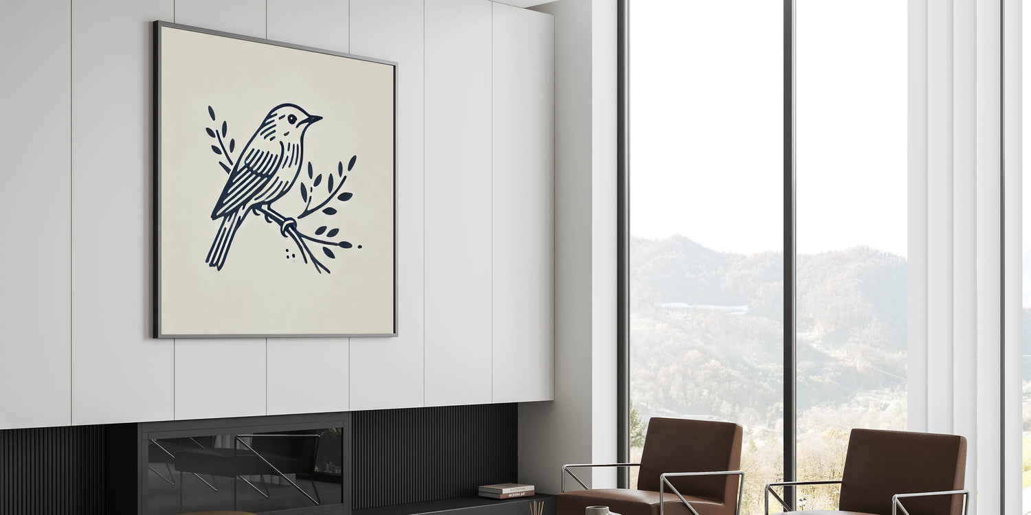 Minimalist Garden Birds Wall Art - Simple Bird Line Art Canvas Decor