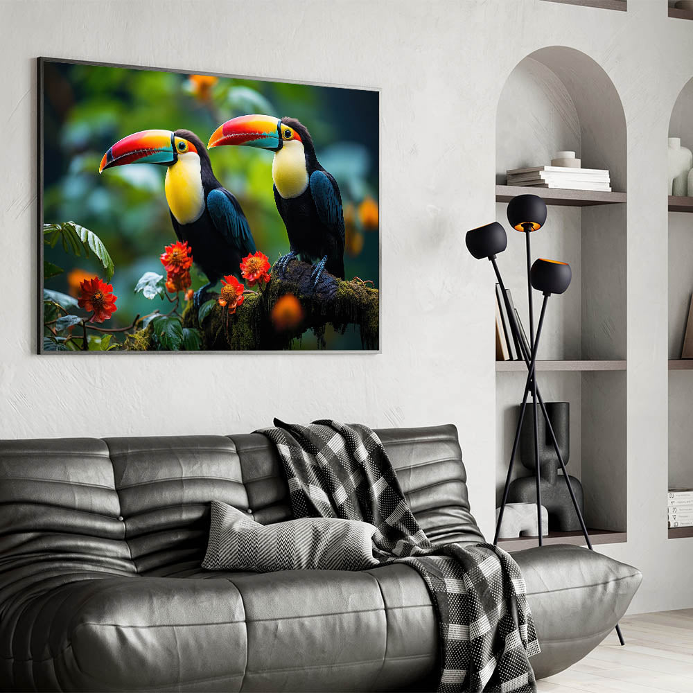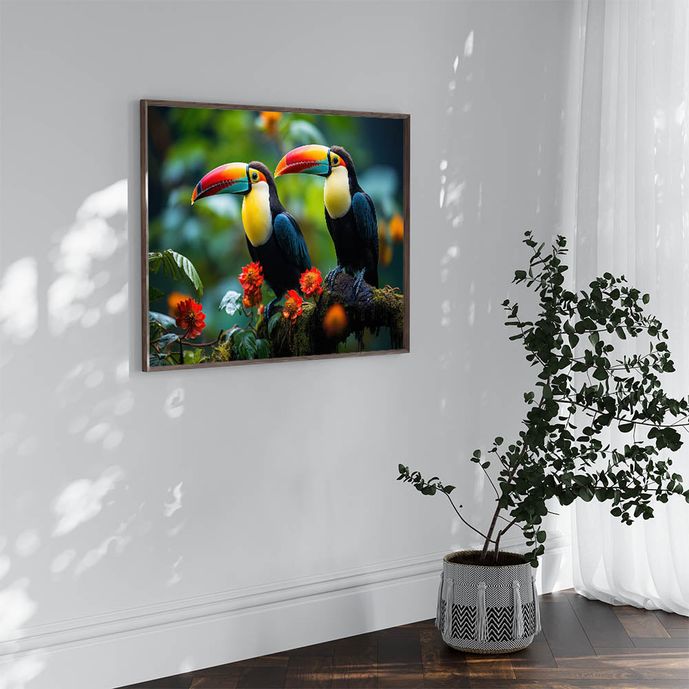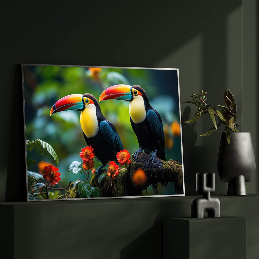 This piece of Tropical Birds artwork is more than just decor; it’s a celebration of the vibrant life of the rainforest. Available in various formats, this toucan art will transform any room into a lively and colorful paradise.