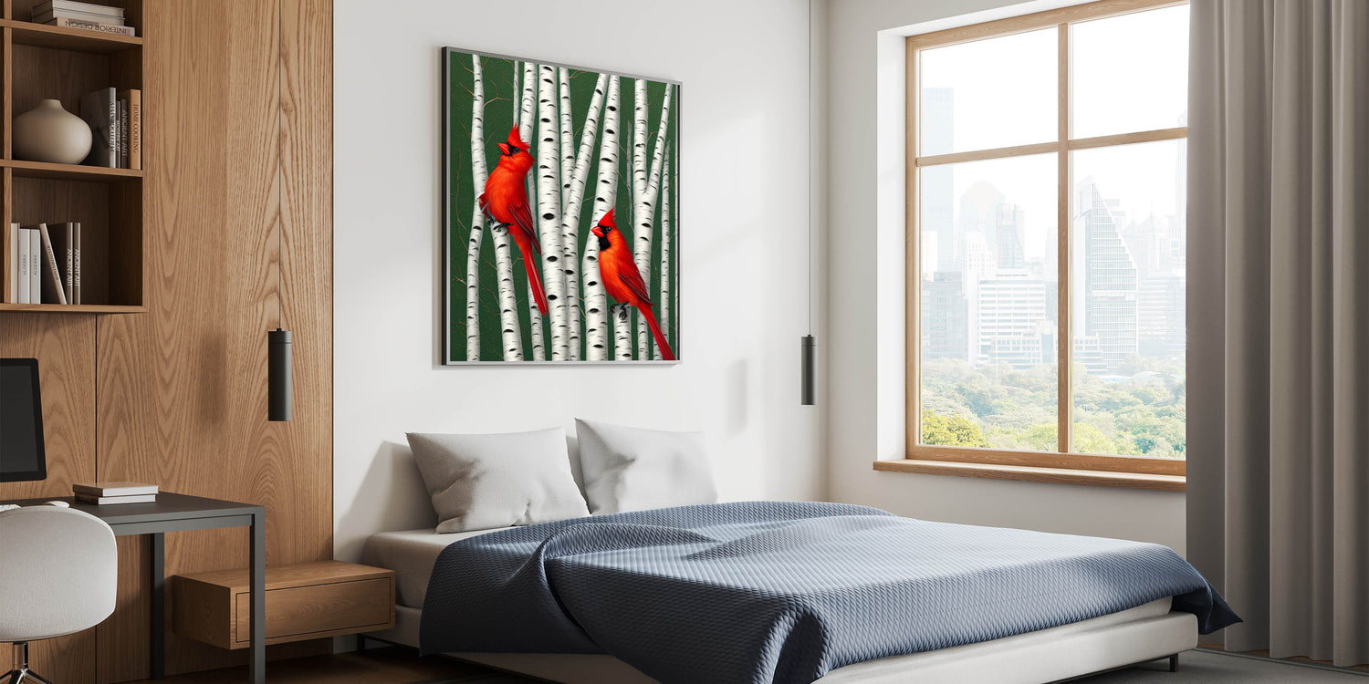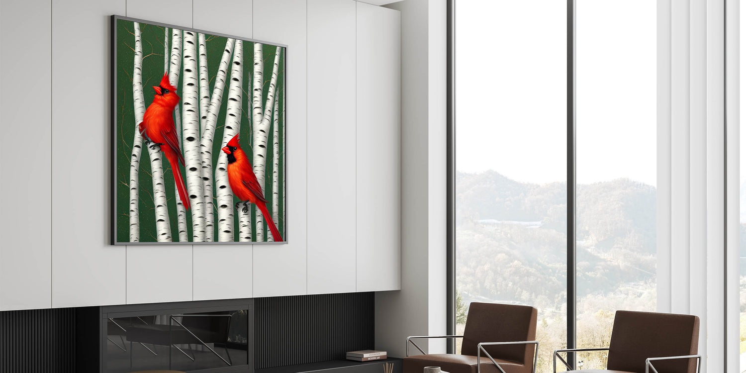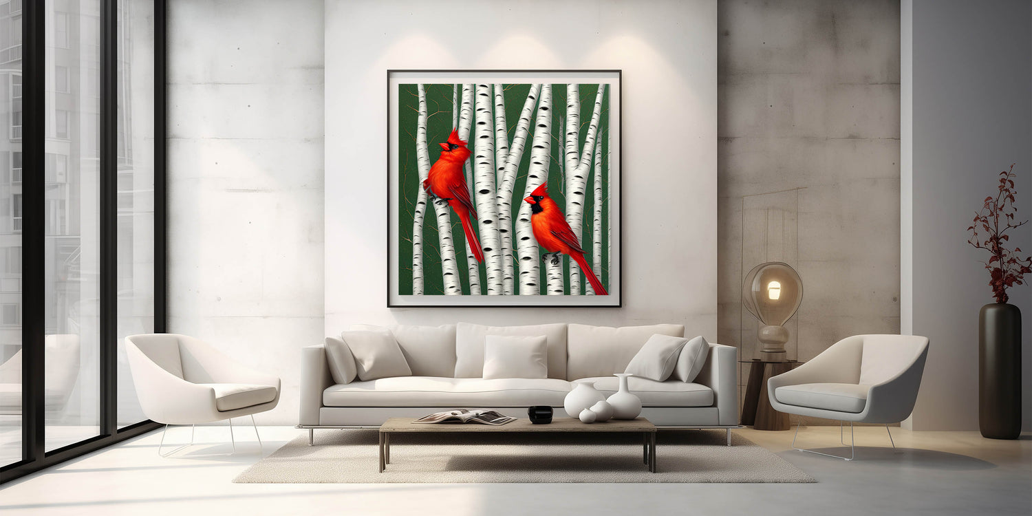 Vibrant Cardinal Wall Art - Majestic Wildlife Print on Birch Trees