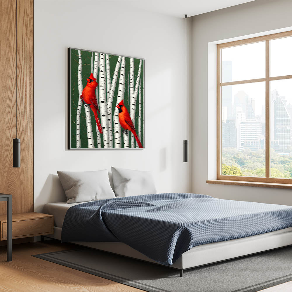 - High-quality, vibrant colors that bring out the beauty of the cardinals and the birch trees.