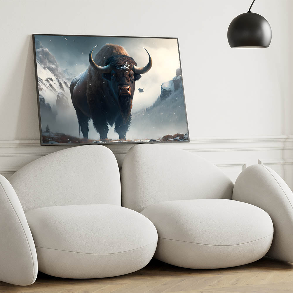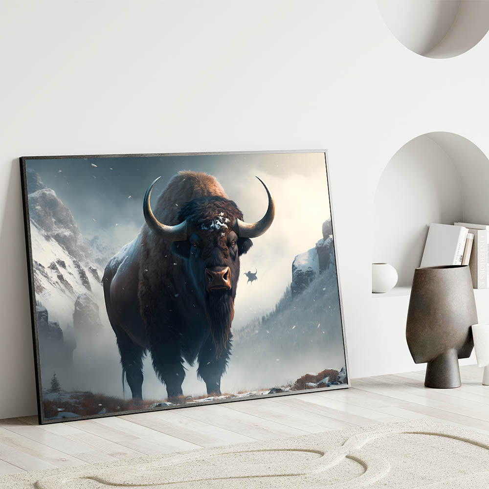 Transform your space with this breathtaking bison artwork, perfect for creating a focal point that captures the wild spirit of nature. Whether displayed in a living room, office, or bedroom, it will inspire admiration and a deep connection to the wilderness.