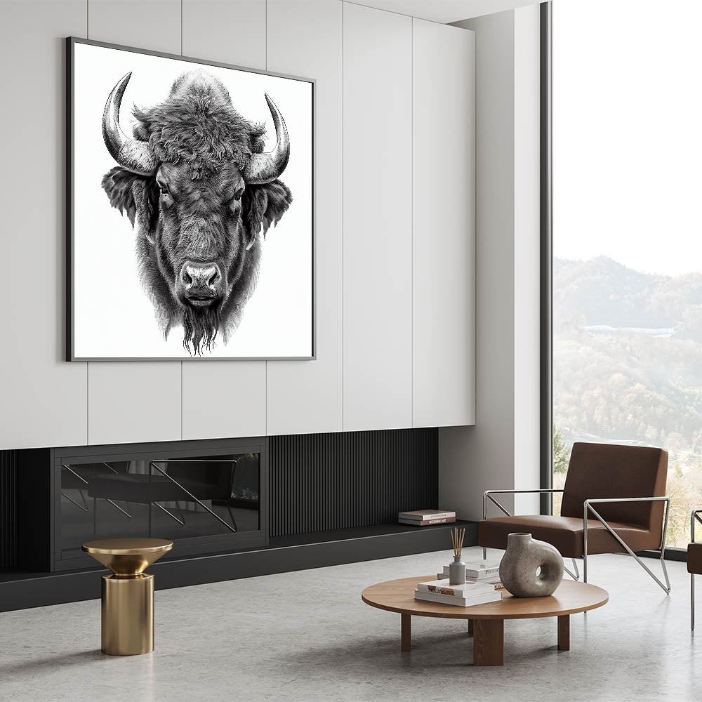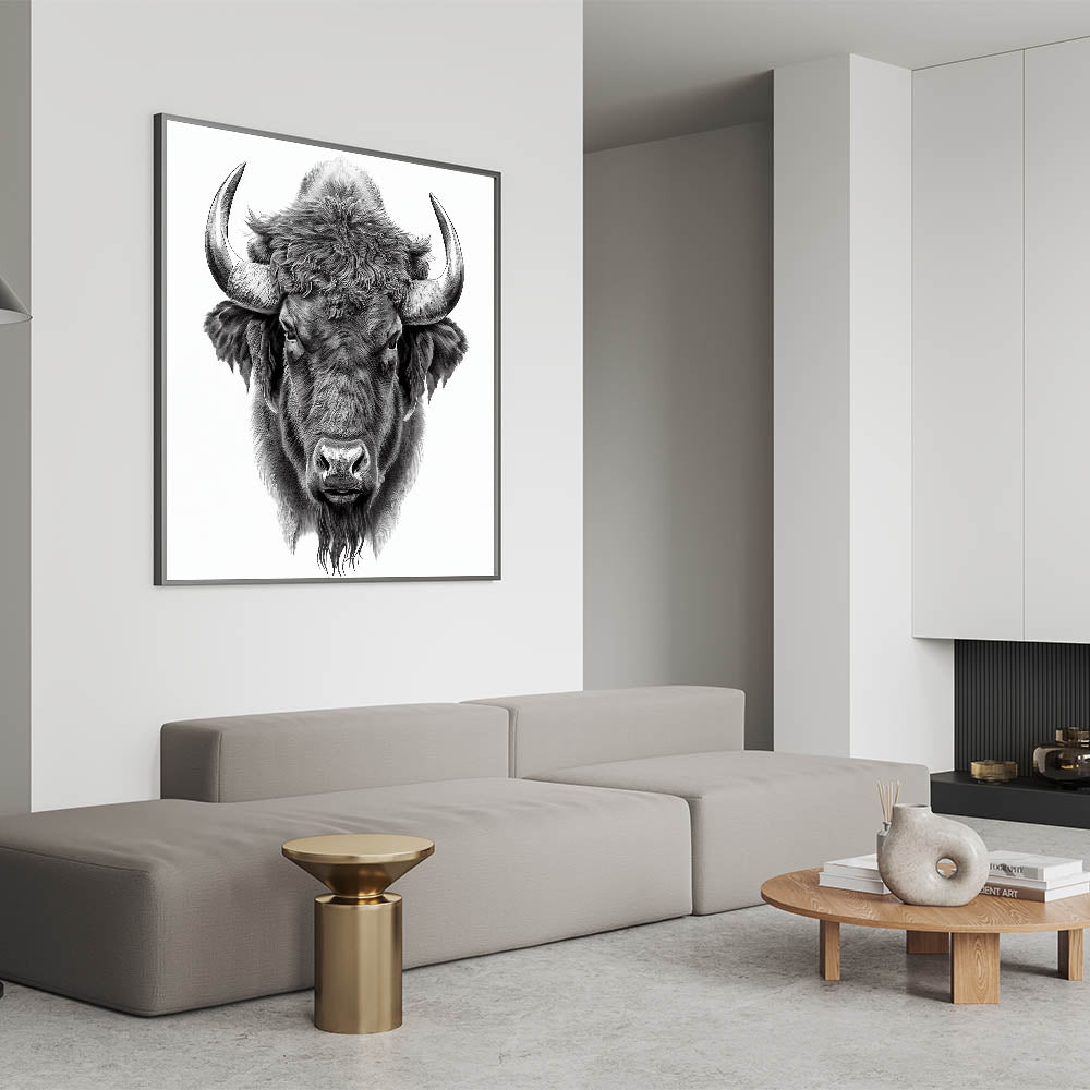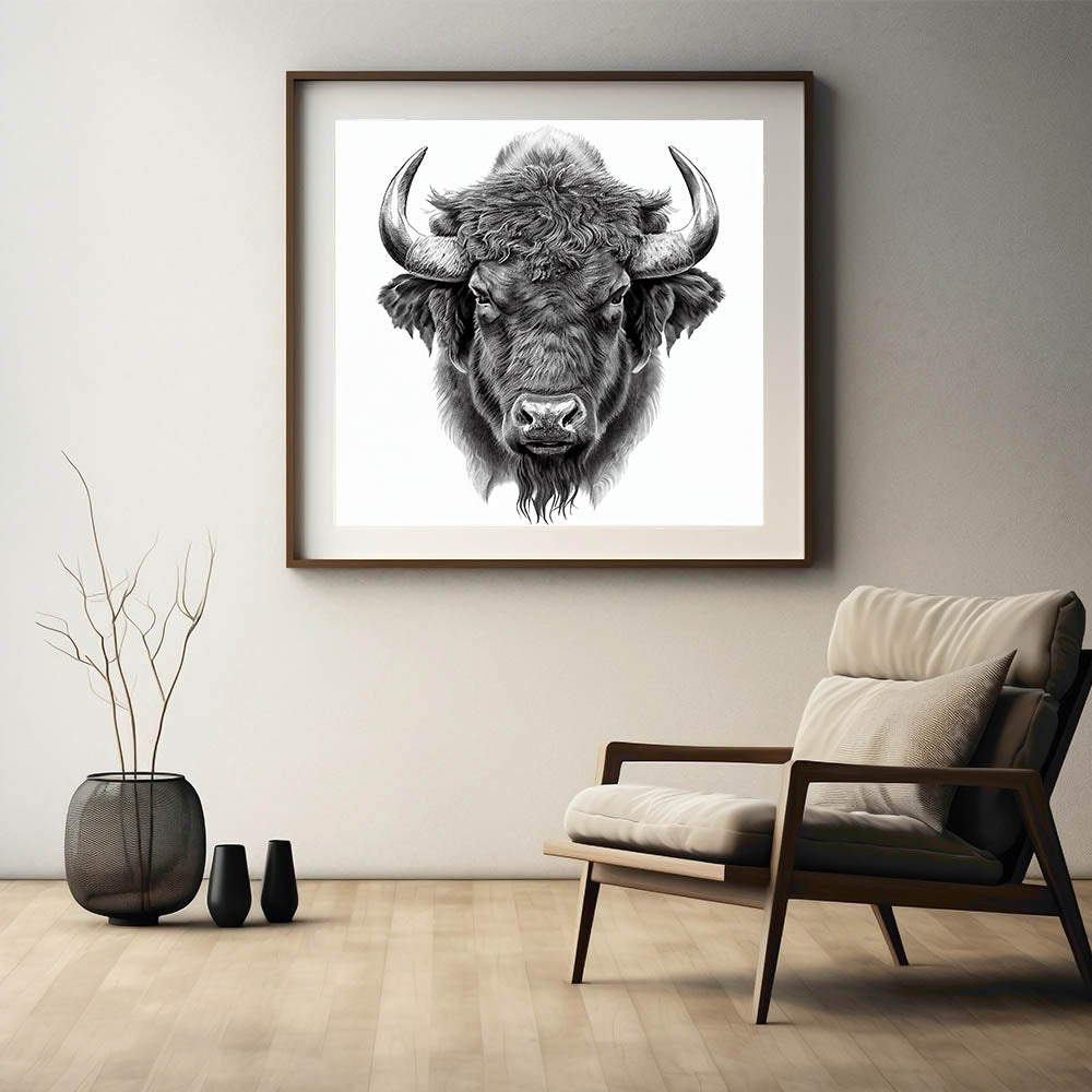 Make a bold statement with this stunning bison illustration. Whether displayed in your living room, office, or bedroom, this piece will bring a touch of the wild into your home with elegance and style.