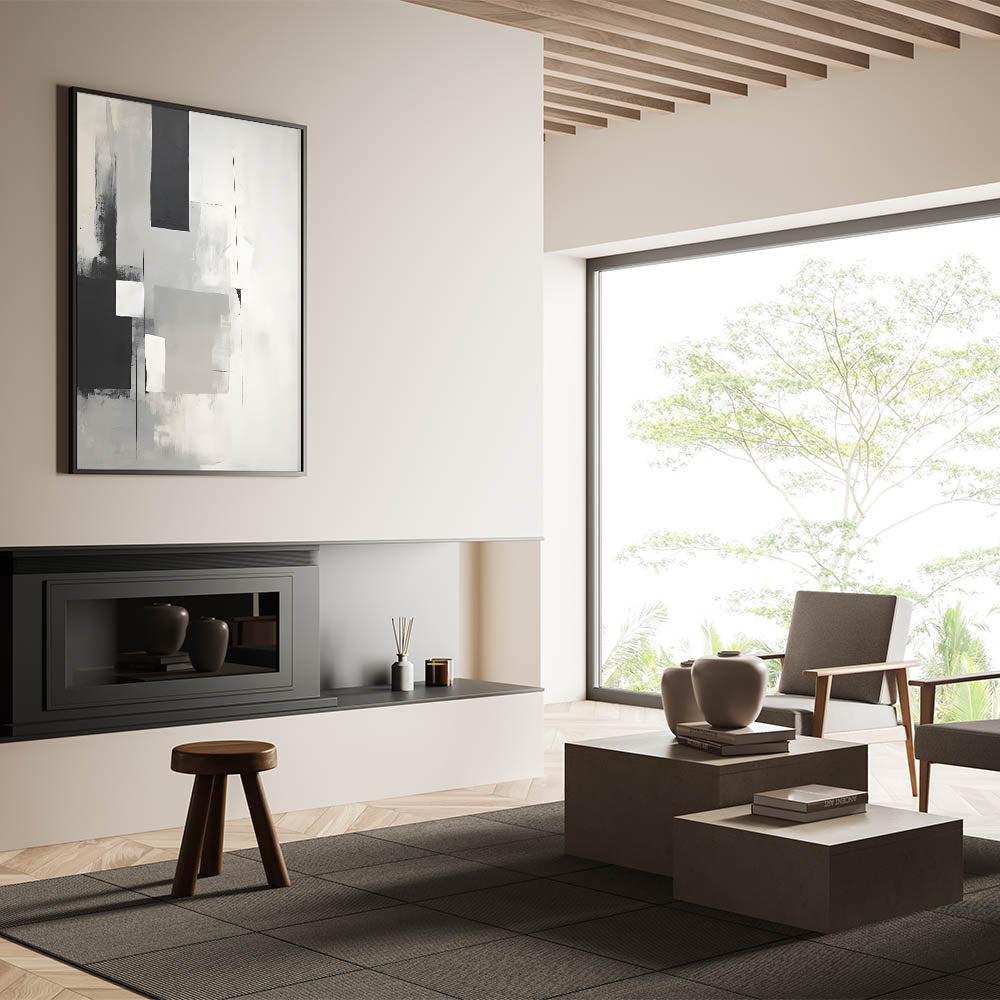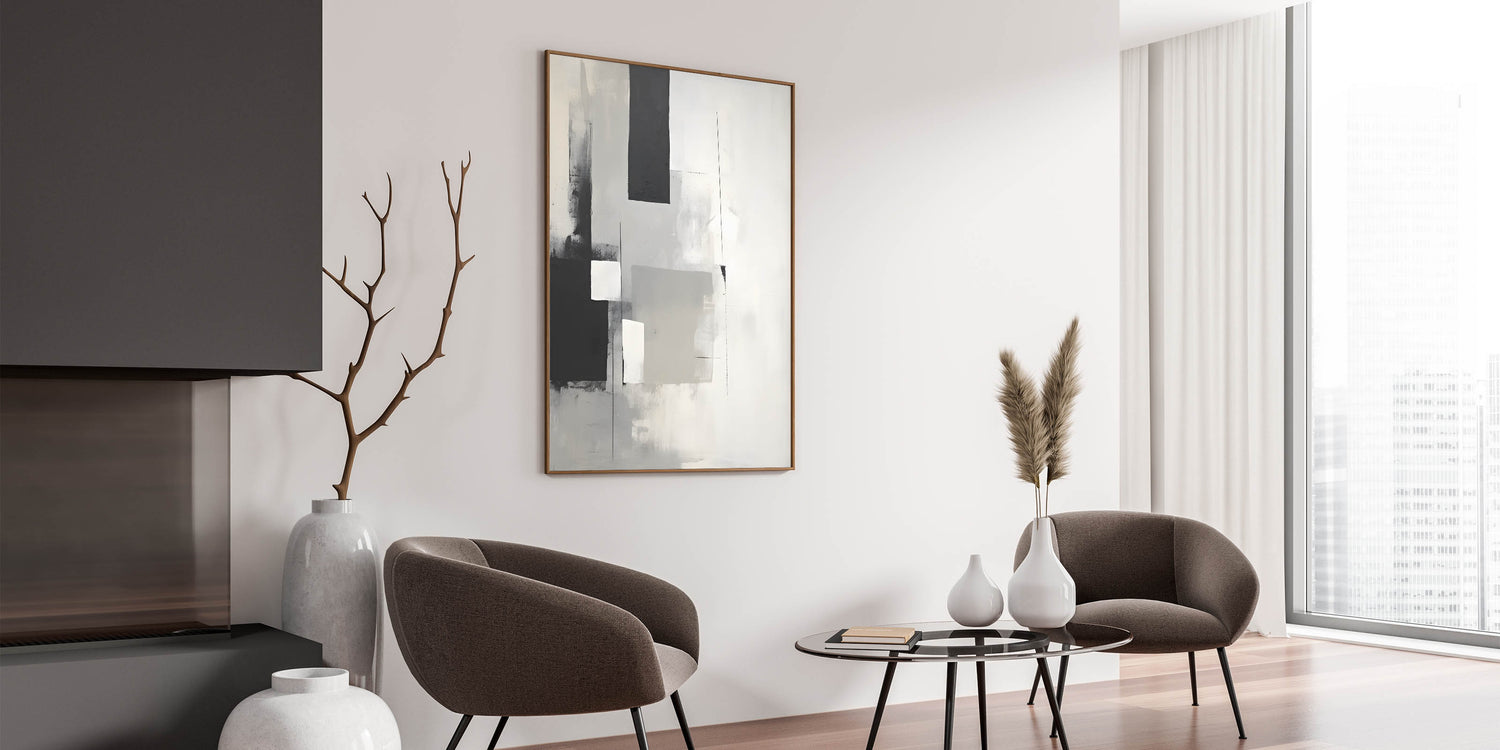 This abstract artwork adds depth and elegance to any space, making it an essential piece for those who appreciate clean lines and minimalist aesthetics. Perfect for enhancing modern spaces with subtle sophistication.