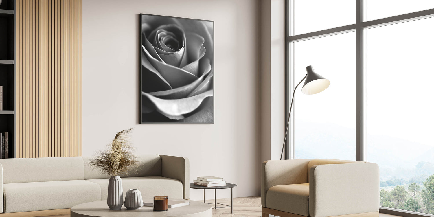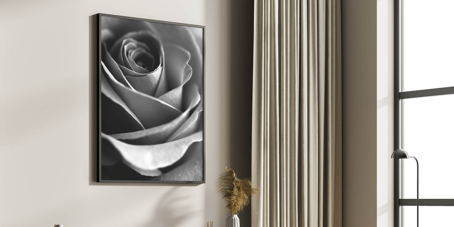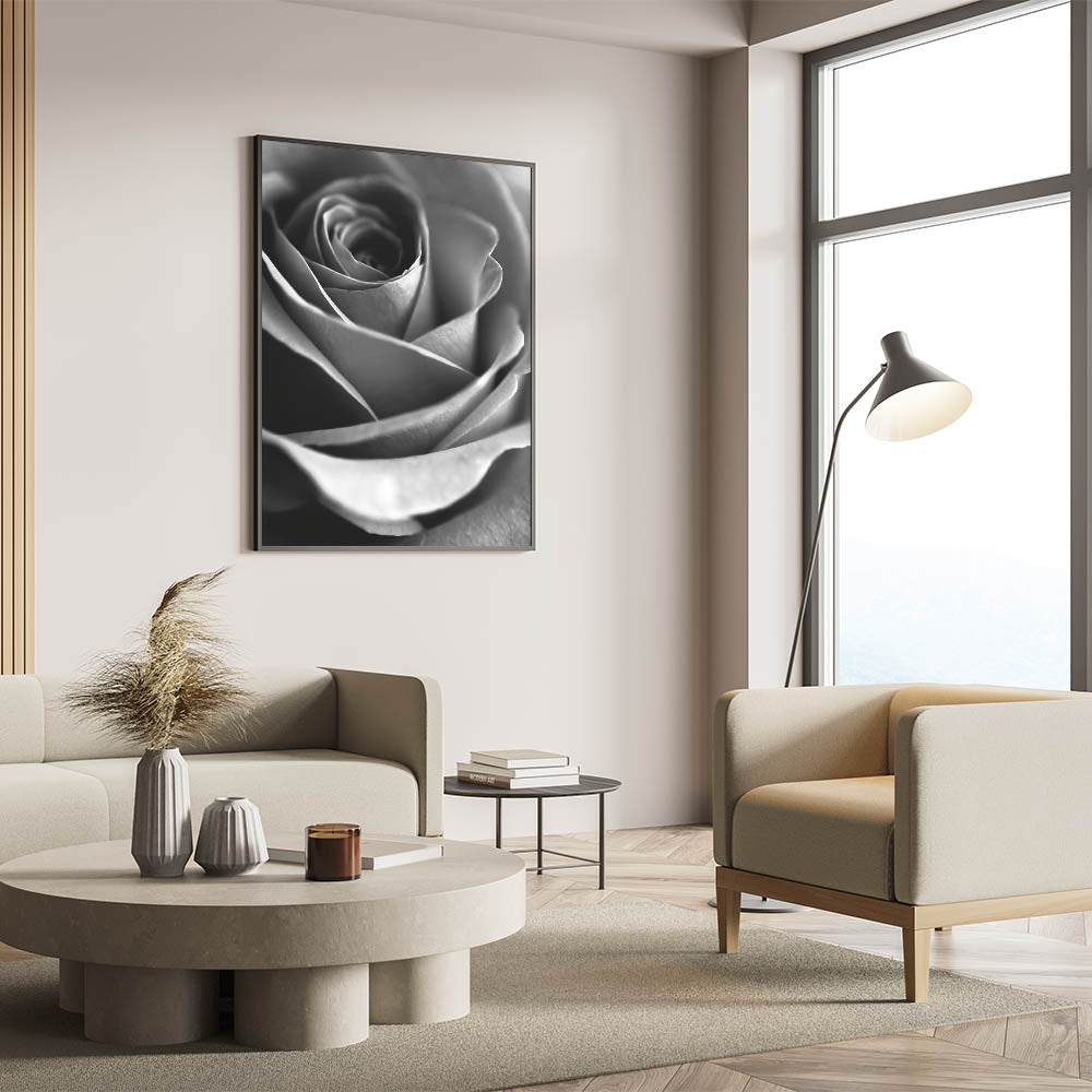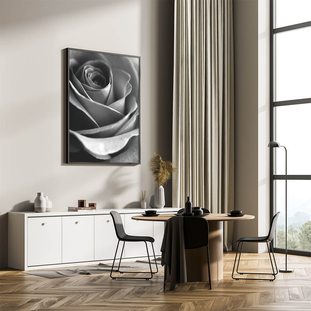 This fine art print highlights the elegance of nature in a striking monochrome presentation, making it an eye-catching piece for any interior. Available in multiple formats, including canvas, acrylic, and framed prints, it effortlessly complements a variety of décor styles.