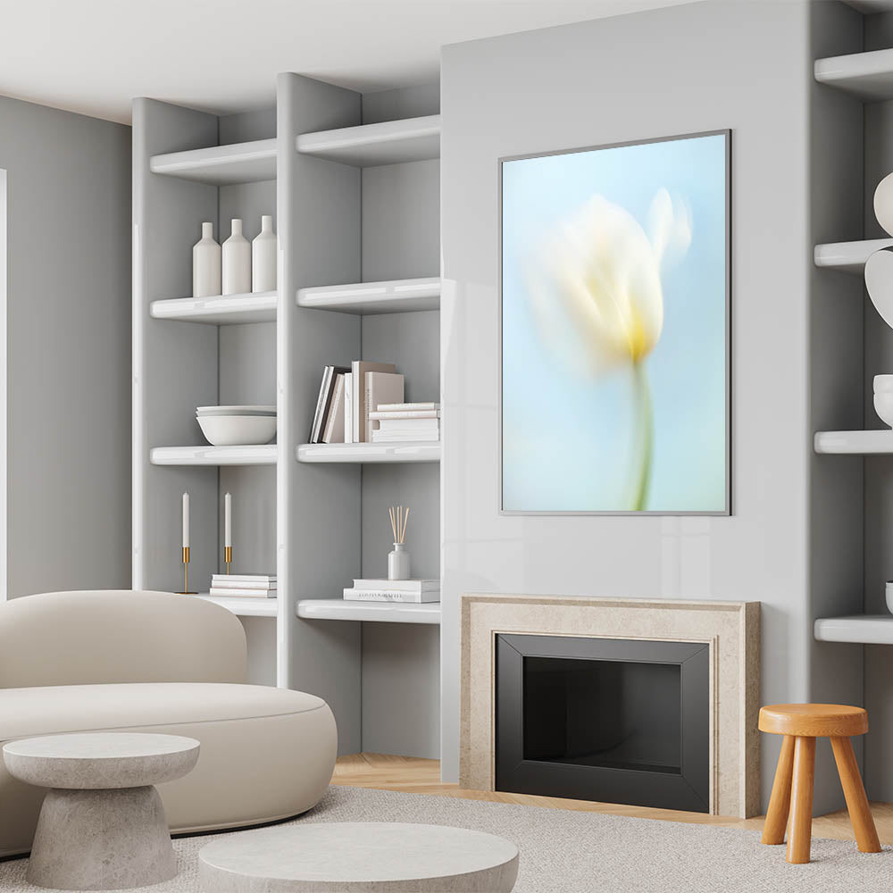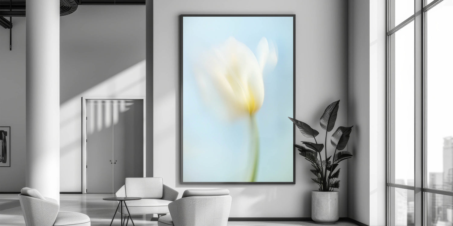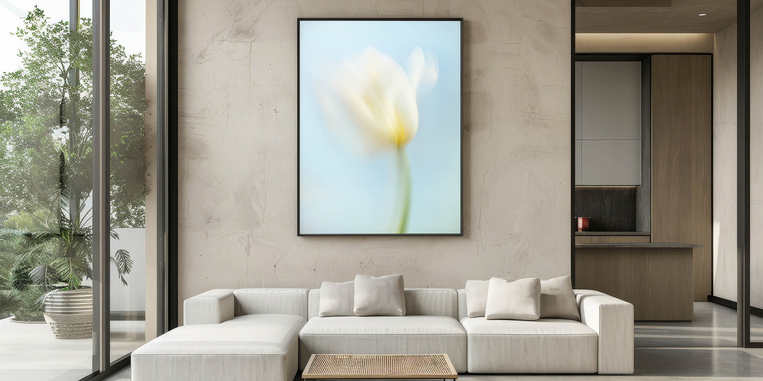 Experience the delicate beauty of nature with this stunning fine art photography print. Featuring a softly blurred tulip against a pastel sky, this ethereal composition captures the fleeting elegance of spring. The dreamy motion effect creates a sense of tranquility, making it a perfect addition to any space.