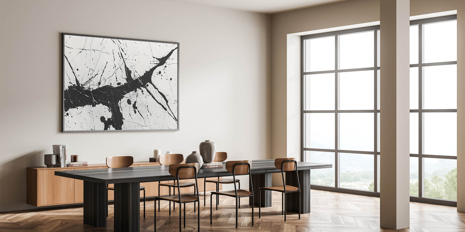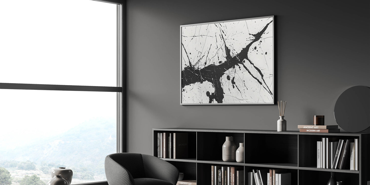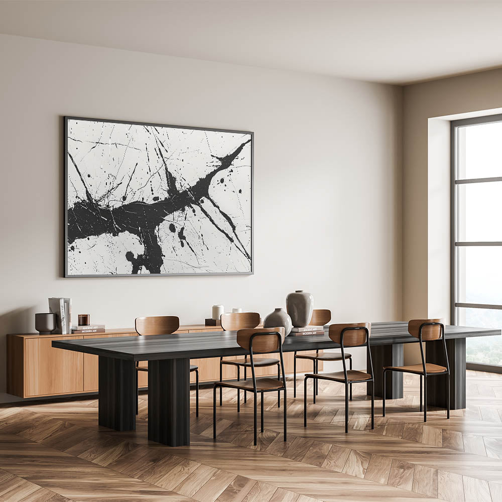 Dynamic Black and White Abstract Art | Splatter Monochrome Canvas