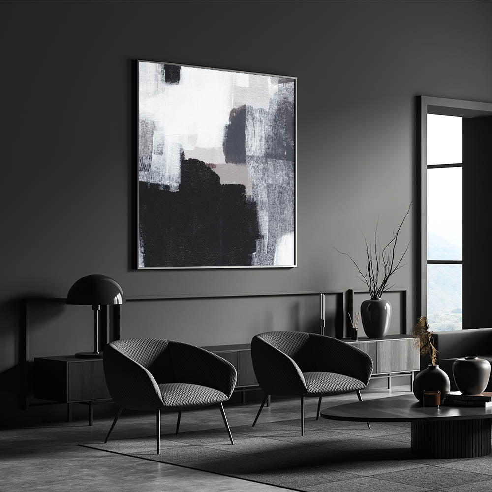 Embrace the beauty of contrast and texture with this captivating Earthen Harmony Abstracts design. Featuring a dynamic interplay of black, white, and dark gray tones, this Abstract Wall Art is a perfect fusion of modern minimalism and contemporary expression.