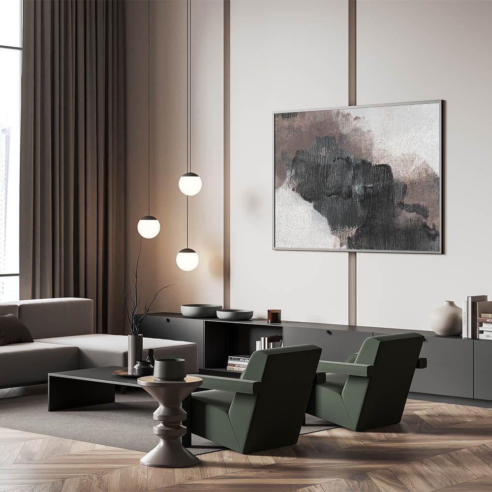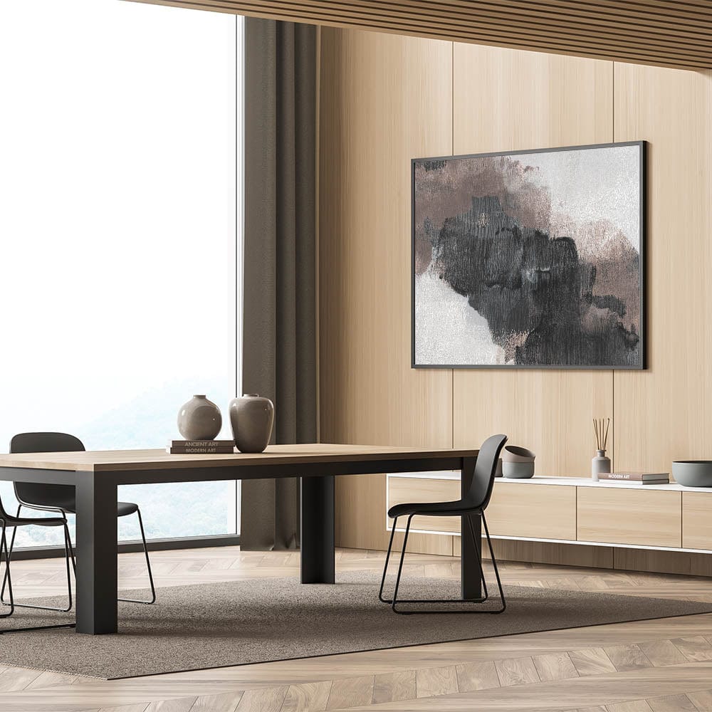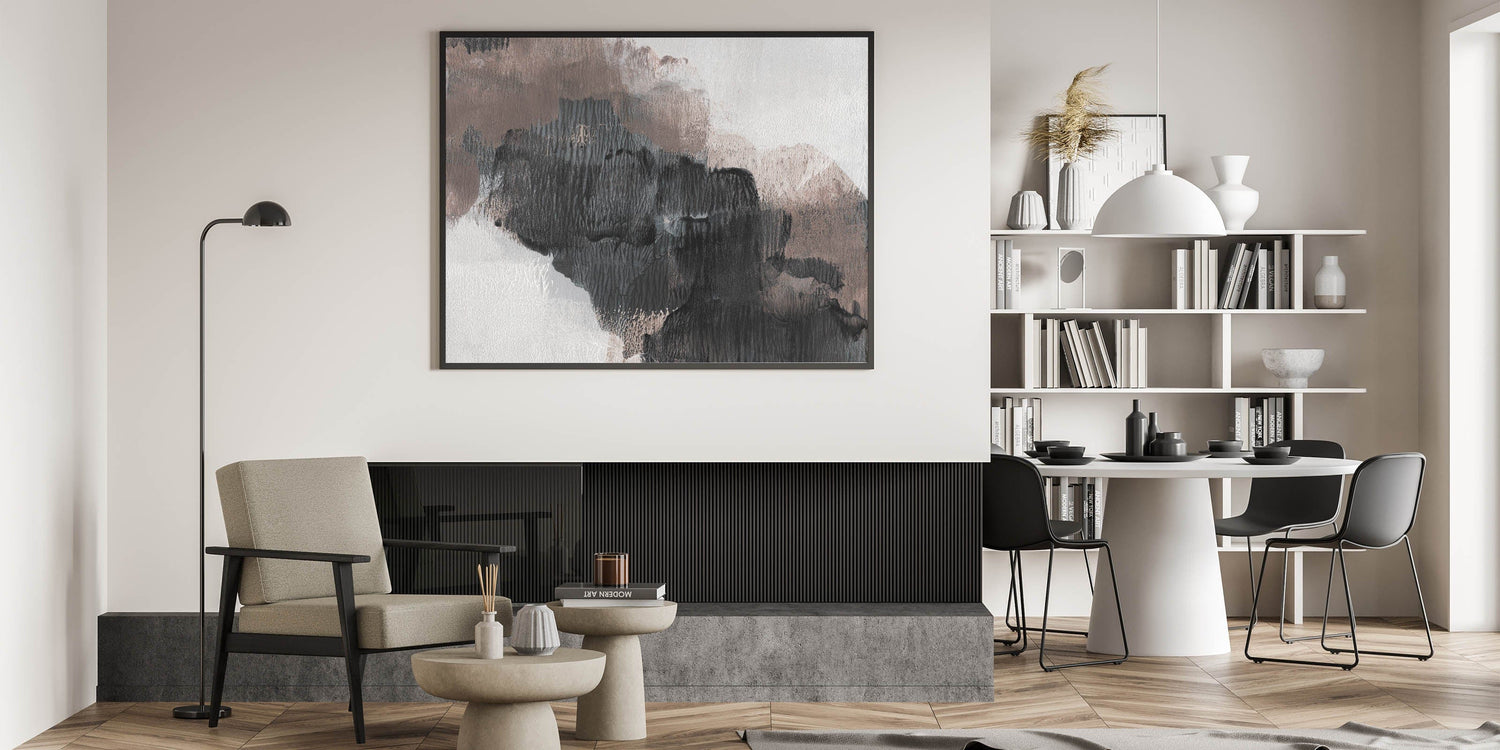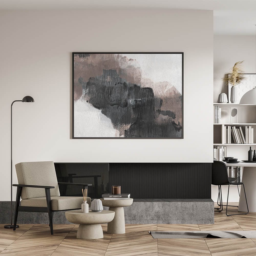 This captivating piece from our Abstracts in Earthen Harmony collection combines textured brushstrokes in shades of black, gray, and beige. The harmonious interplay of tones creates a dynamic yet soothing abstract composition, making it a perfect addition to any modern home.