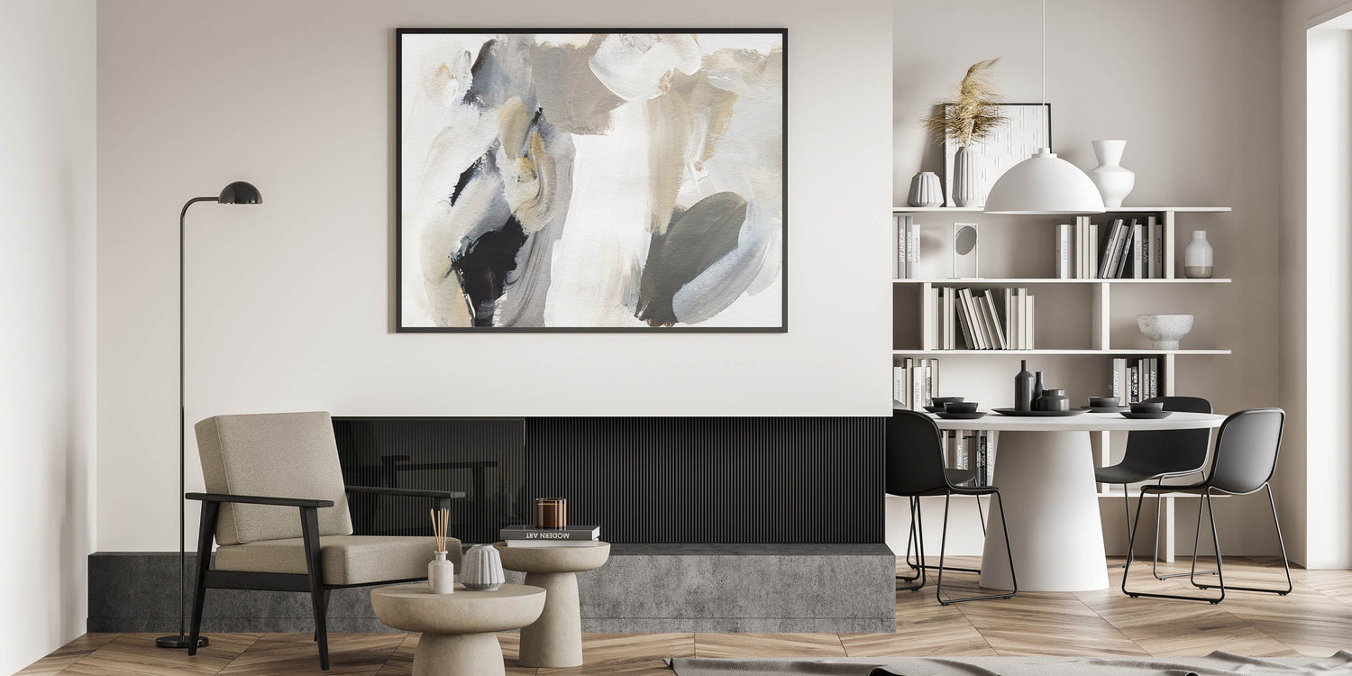 Elevate your space with this moody modern wall art, a stunning fusion of black, gray, beige, and soft white hues. The fluid brushstrokes and organic composition bring a sense of movement and sophistication, making this abstract wall art a captivating focal point. Perfect for modern, minimalist, or industrial interiors, this artwork adds depth and elegance to any room.