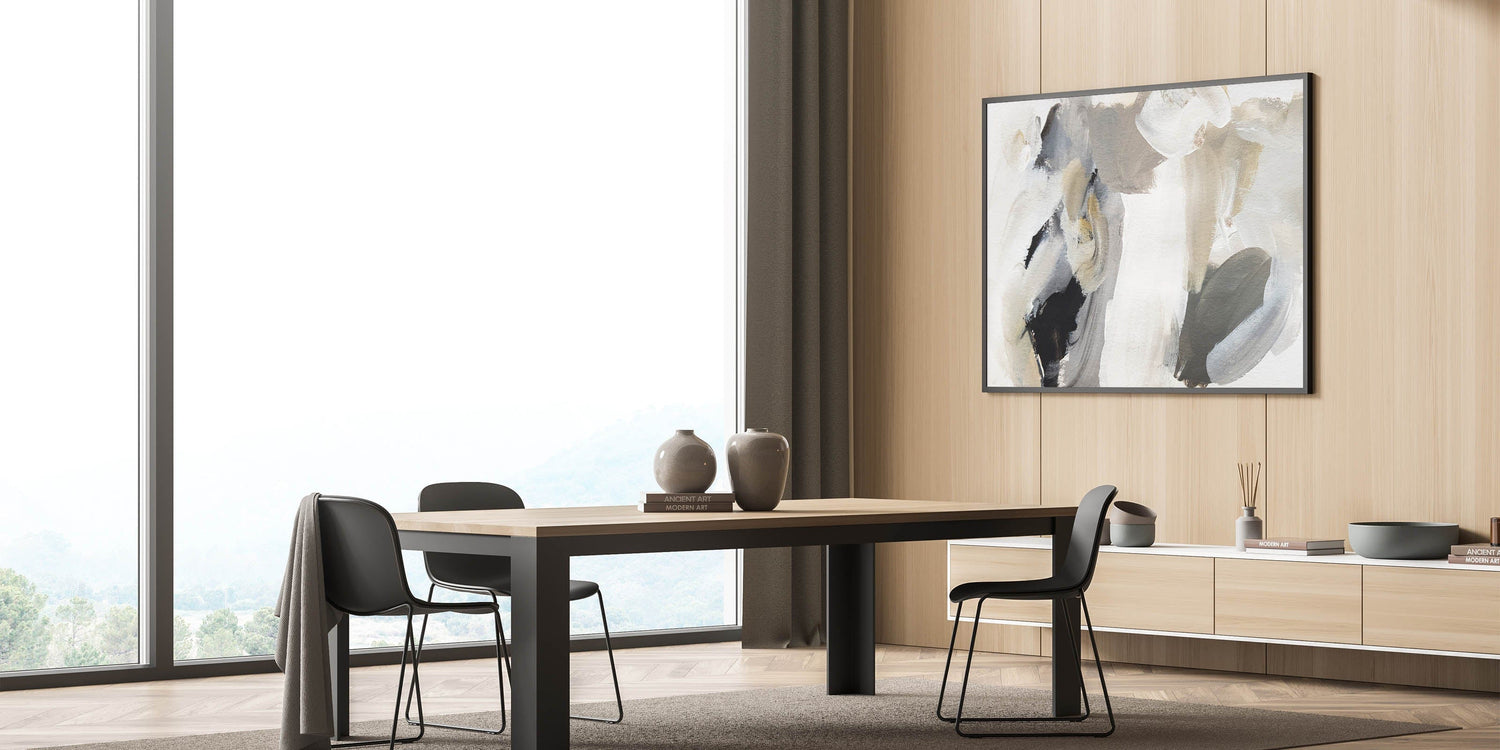 Elegant Moody Modern Wall Art – Abstract Black & Beige Canvas