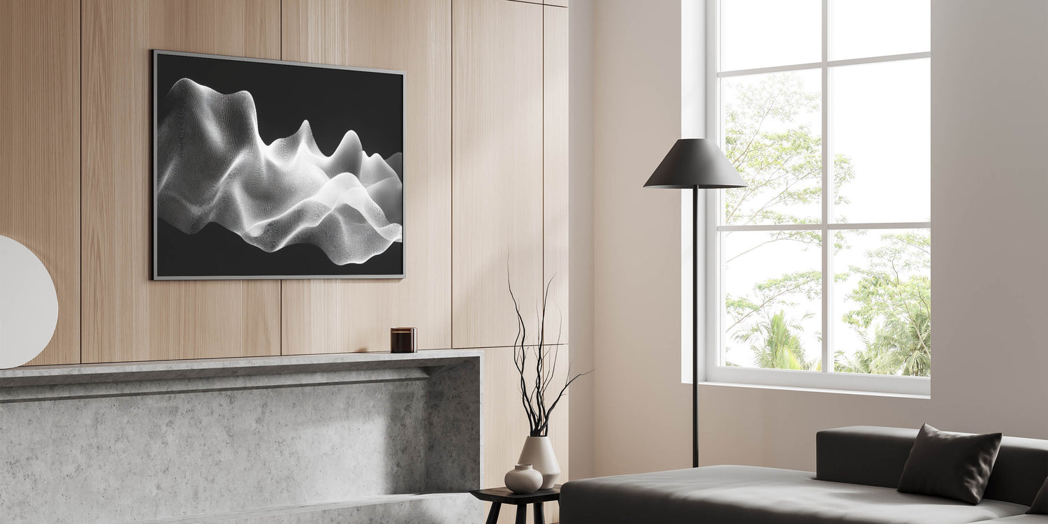 Large Abstract Wall Decor – Black & White Digital Wave Motion