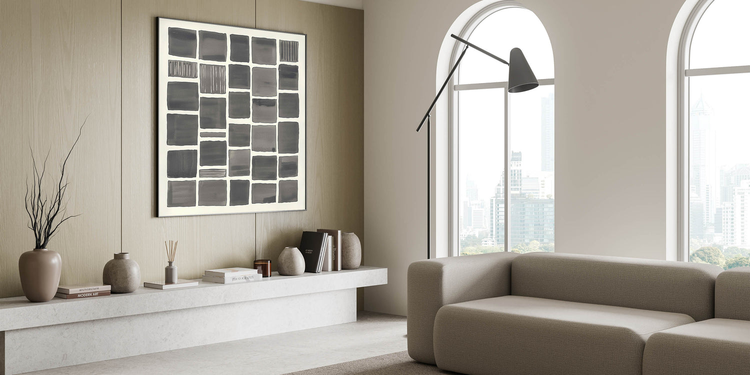 This piece is perfect for those who appreciate clean lines and understated elegance. Its neutral palette and geometric patterns make it versatile enough for offices, living rooms, or bedrooms. Whether as a standalone statement or part of a gallery wall, this artwork will bring a sense of harmony and style to any setting.