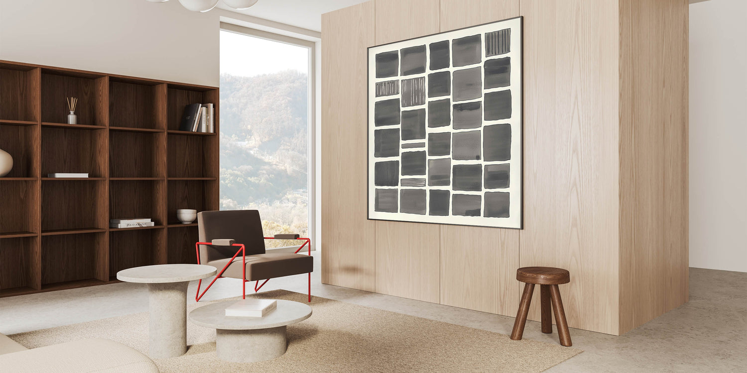 • Sophisticated Design: A grid of geometric squares in diverse gray tones for a refined, modern look.