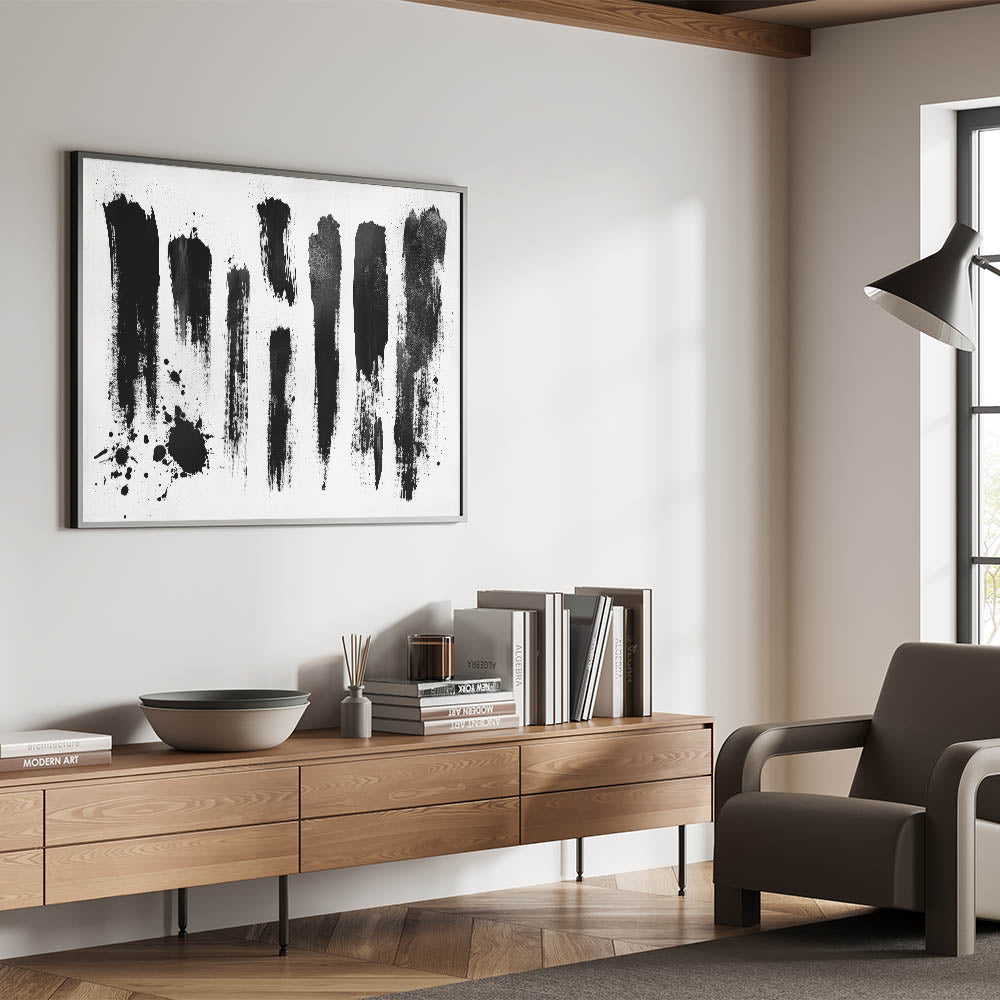 This contemporary black and white abstract art is ideal for those seeking a minimalist yet impactful decor statement. Whether displayed as a standalone focal point or as part of a gallery wall, this artwork complements a variety of interior styles. Explore our collection to find more black and white abstract art online.