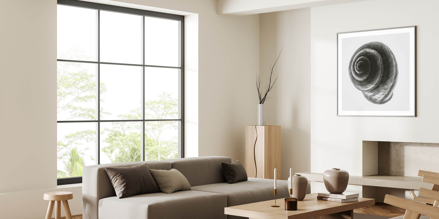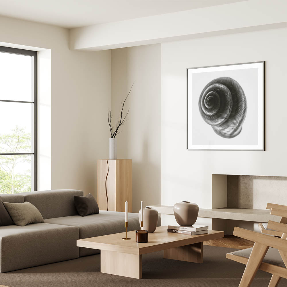 Minimalist Shell Close-Up – Black & White Fine Art Photography Print