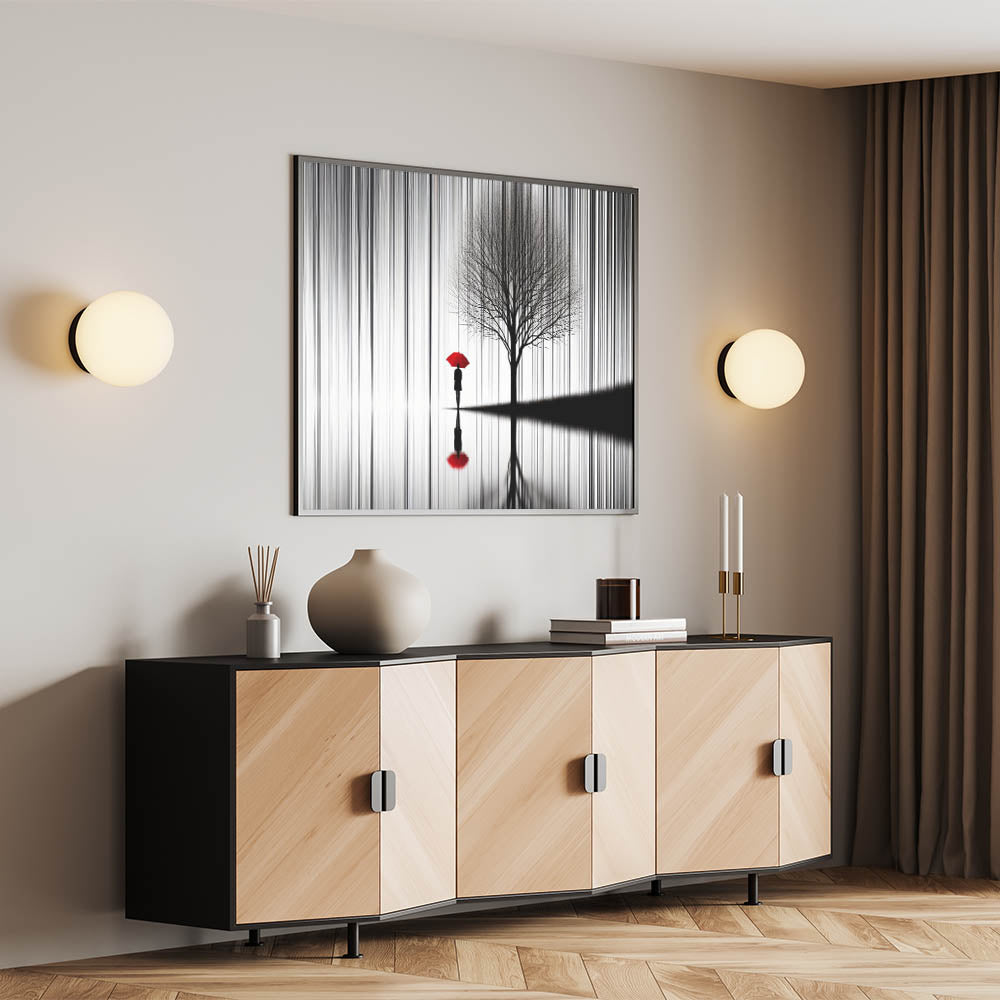 Ideal for art lovers who appreciate simplicity with a dramatic edge, this artwork brings a sense of tranquility and mystery to any room. Its minimalist design and impactful color scheme make it a captivating focal point in modern decor.