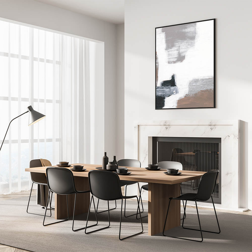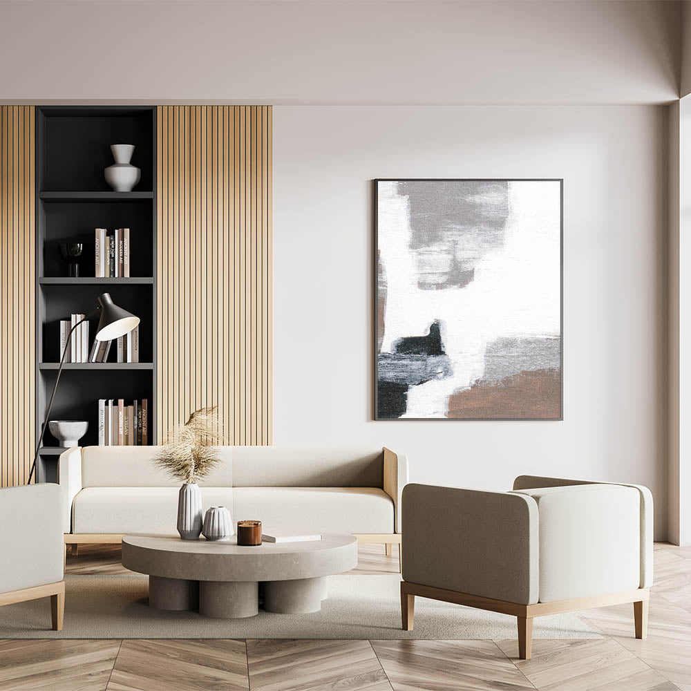 This Contemporary Canvas Art features an interplay of black, white, gray, and brown hues, creating a striking yet calming visual appeal. Its fluid brushwork and soft transitions embody the essence of modern home decor, offering versatility for various settings, including living rooms, offices, and bedrooms.