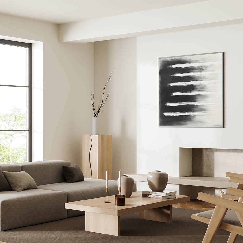 Modern Abstract Wall Art - Black & White Minimalist Canvas