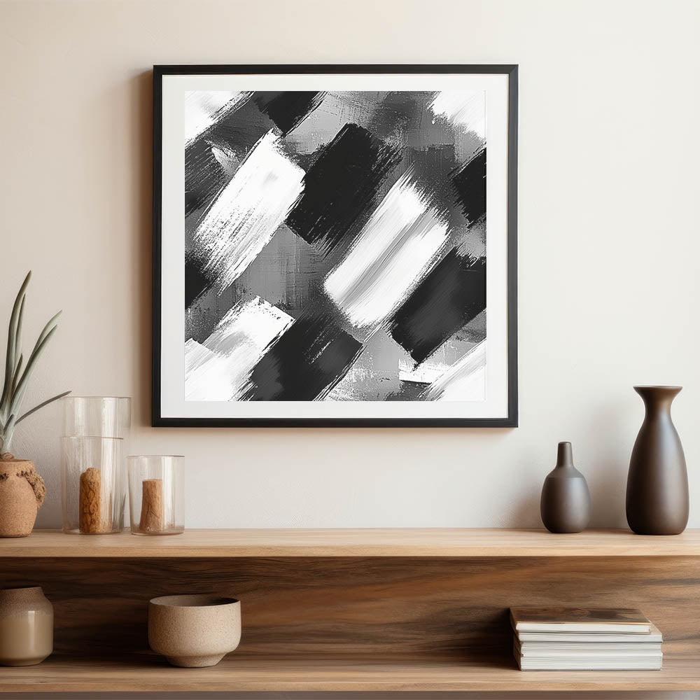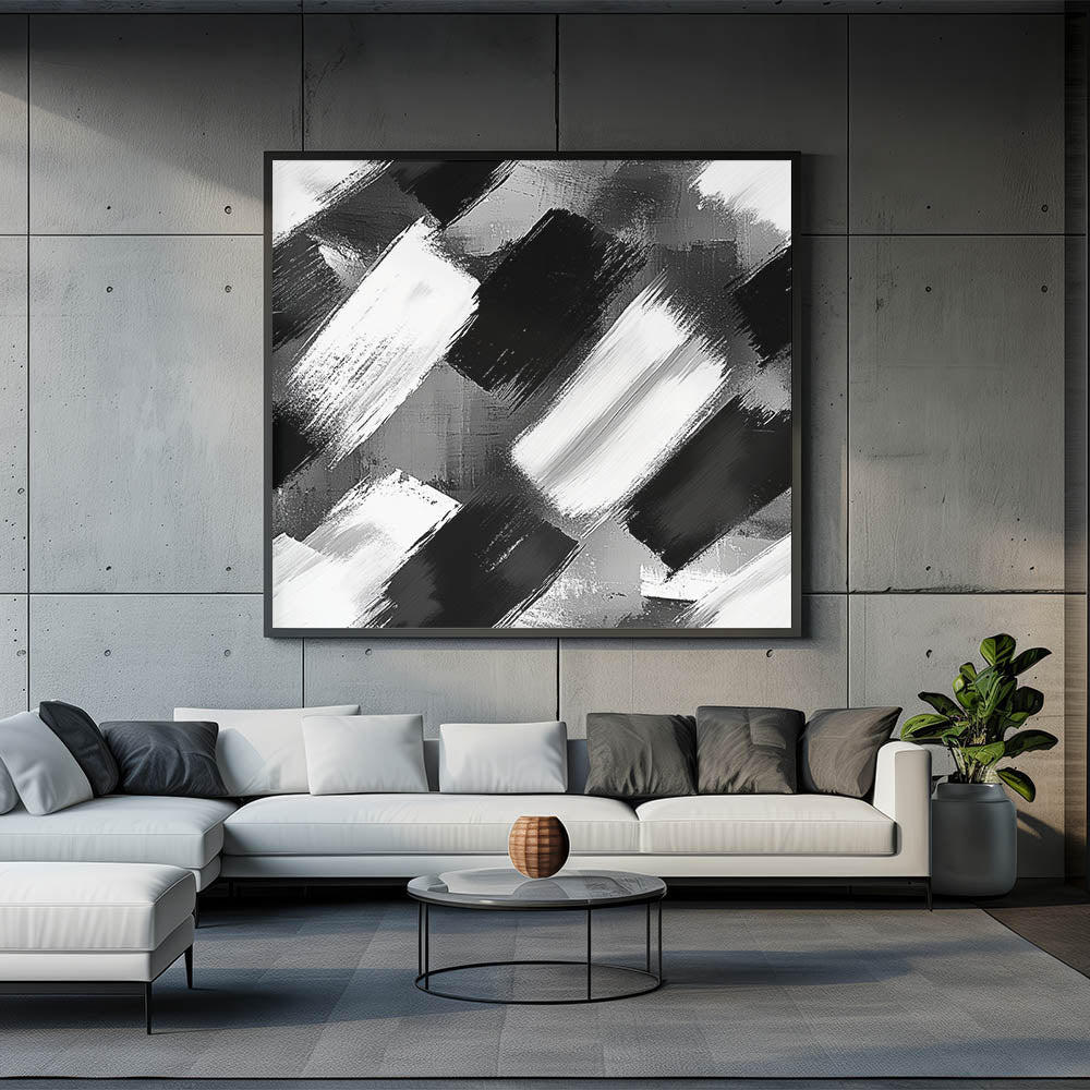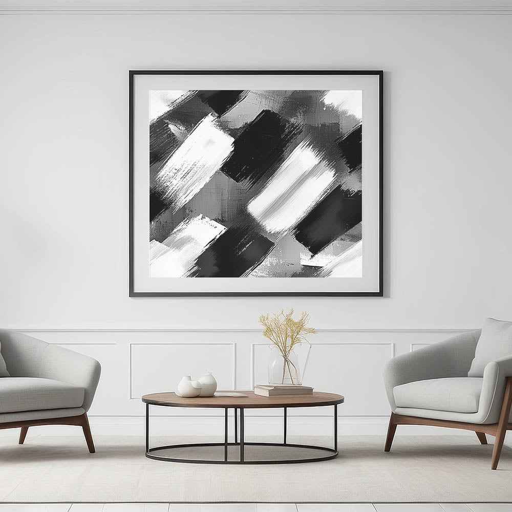 Enhance your space with this striking contemporary black and white abstract art piece, a perfect blend of bold brushstrokes and dynamic contrast. Ideal for modern interiors, this black and white abstract art print brings sophistication and a timeless aesthetic to any room.