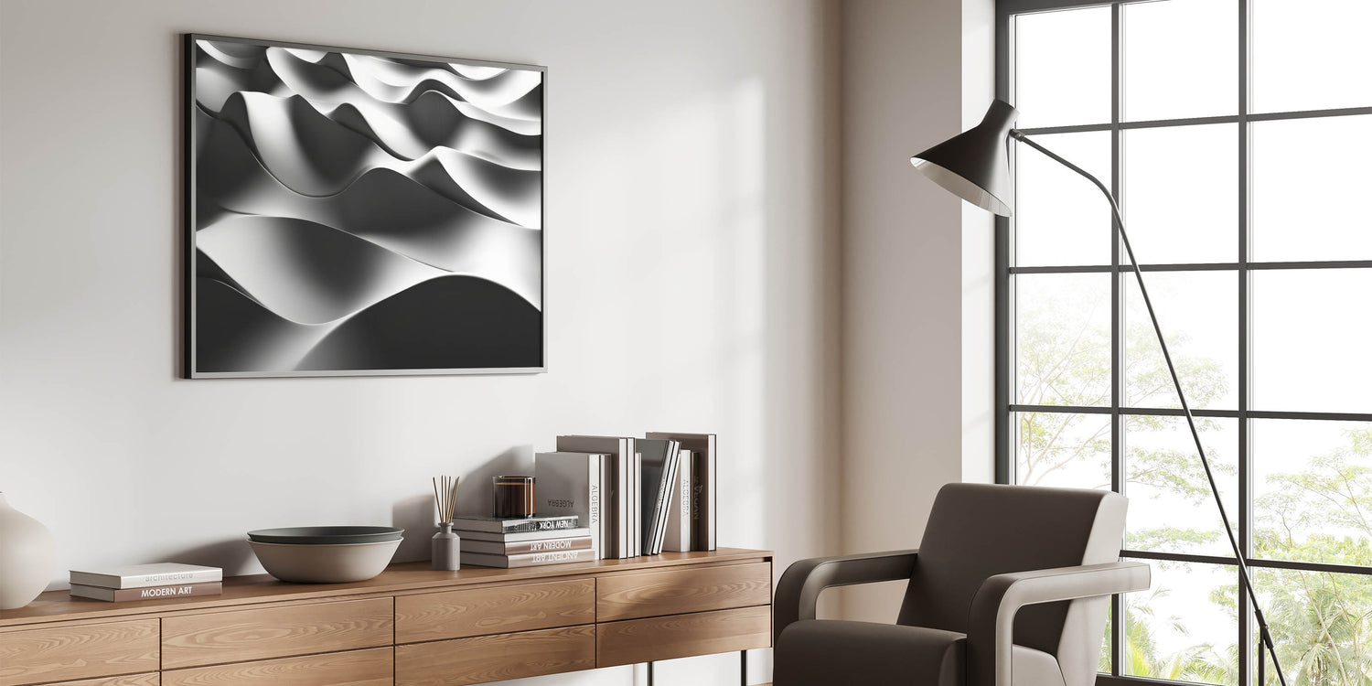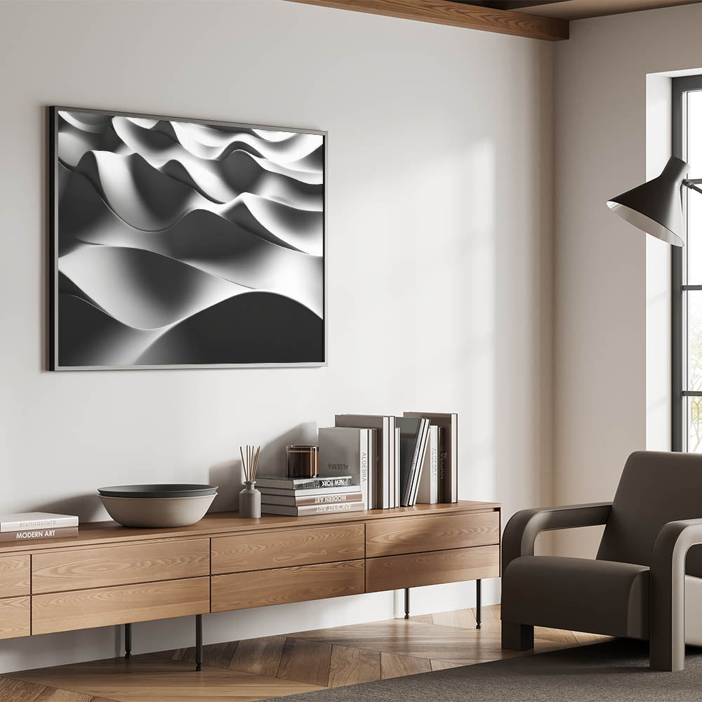 Elevate your space with this bold abstract wall art, part of our high-contrast abstract art designs collection. Featuring graceful, undulating forms in striking black and white, this piece captures the essence of contemporary minimalism. Perfect for those drawn to sleek design, it’s a refined example of modern abstract canvas prints for home decor.