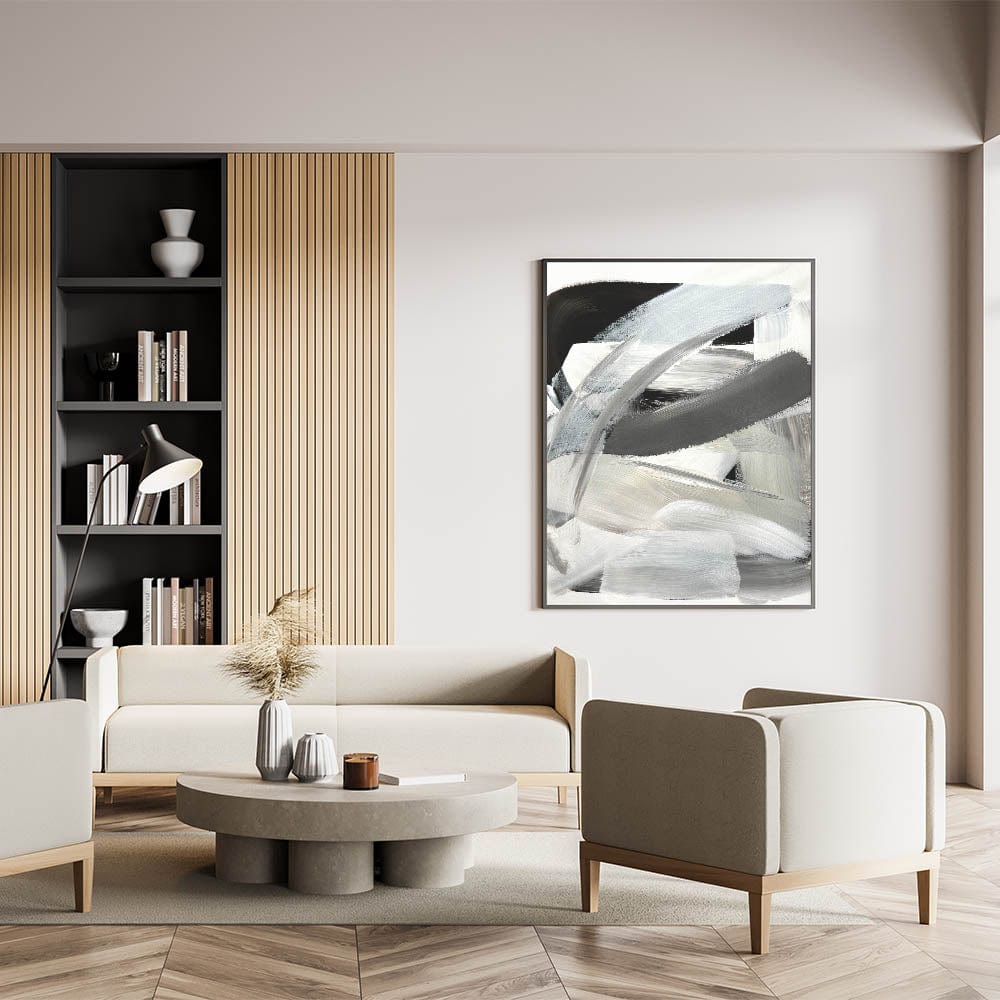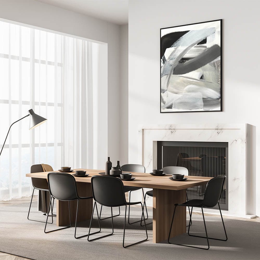 Enhance your space with this moody modern wall art, a striking composition of contemporary abstract art in black, dark gray, and soft white. The bold brushstrokes create movement and depth, making this abstract canvas wall art perfect for minimalist, industrial, and modern interiors. Its monochrome elegance blends seamlessly with any space.