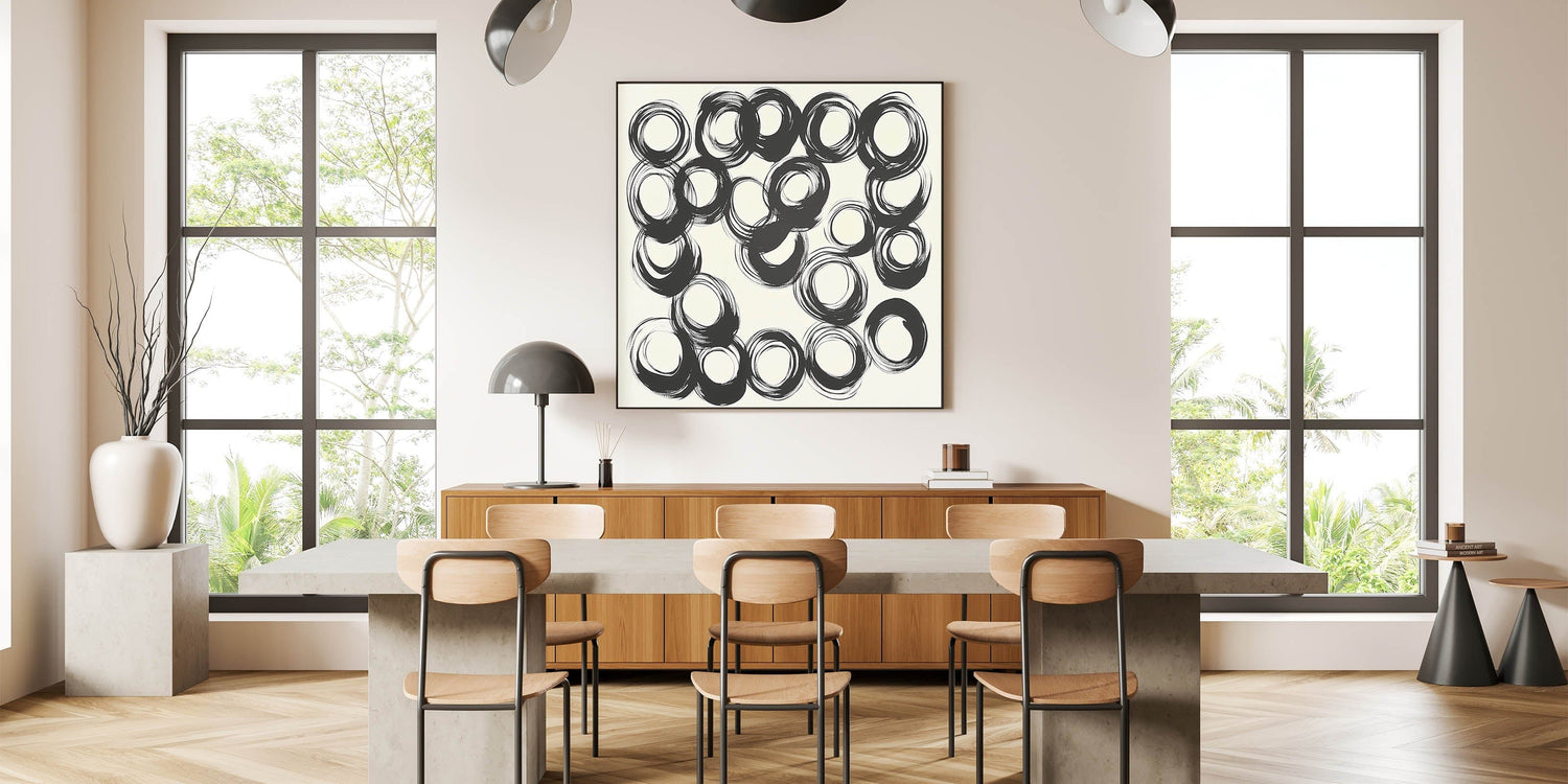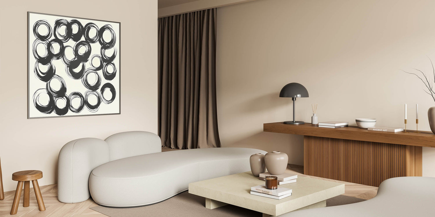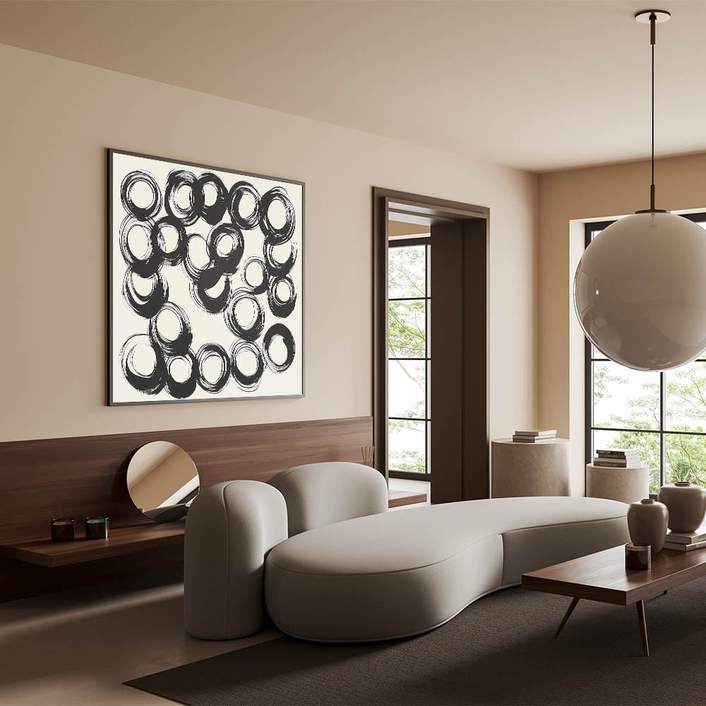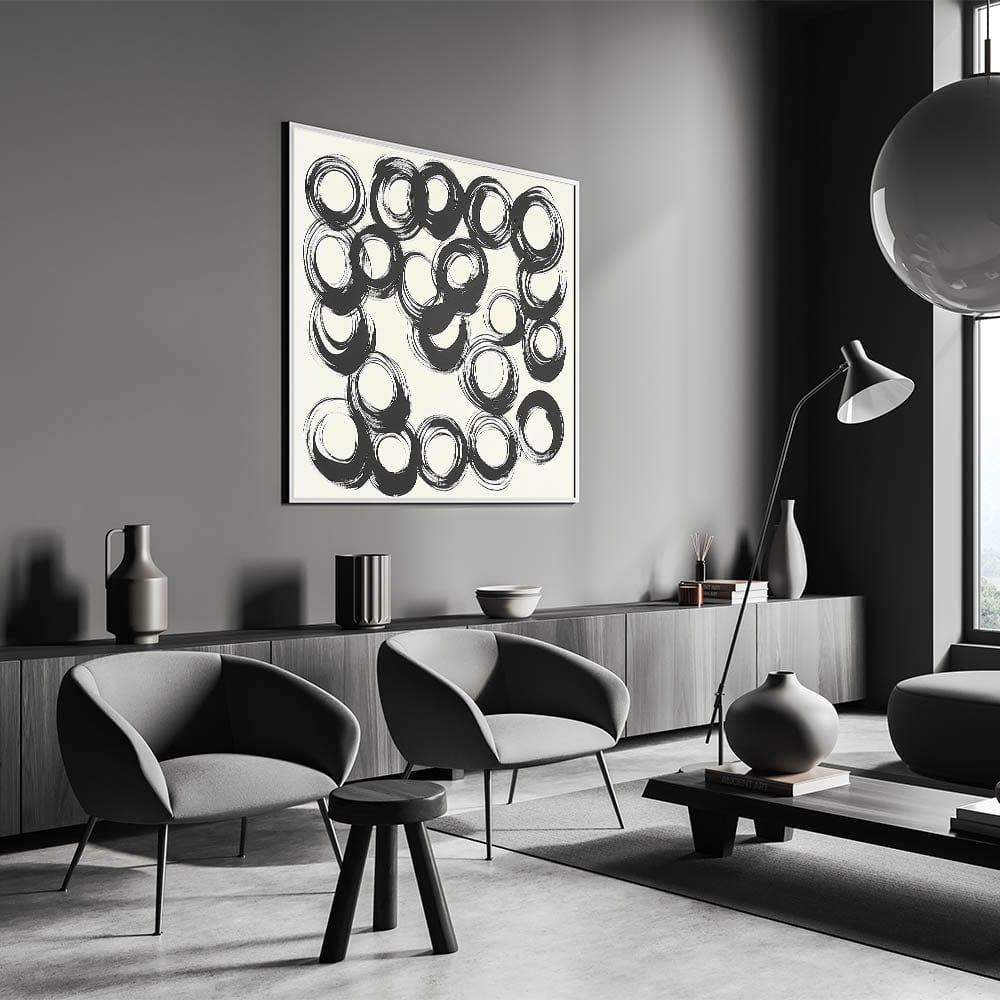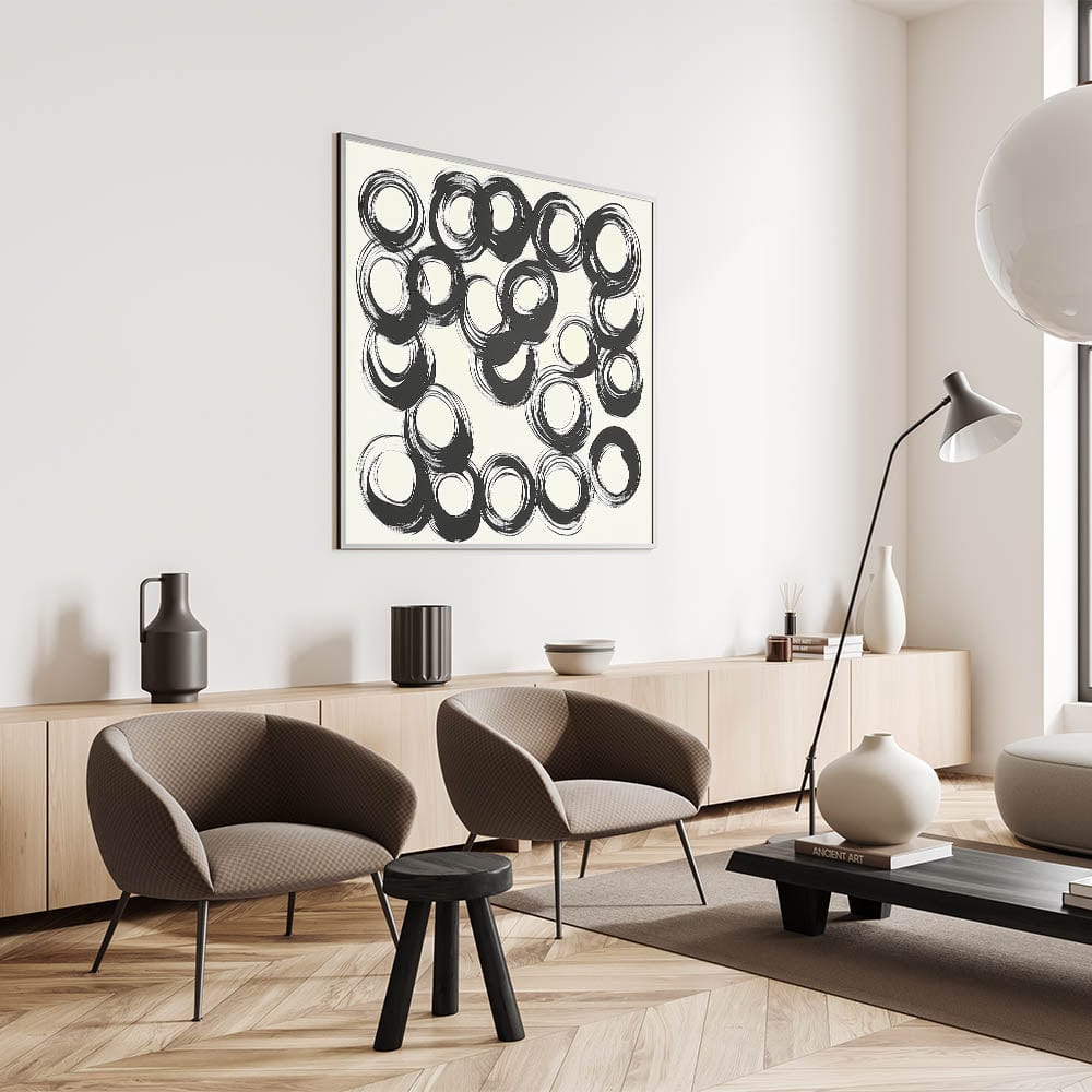 Abstract Art Prints – Rhythmic Ink Circles on Neutral Canvas