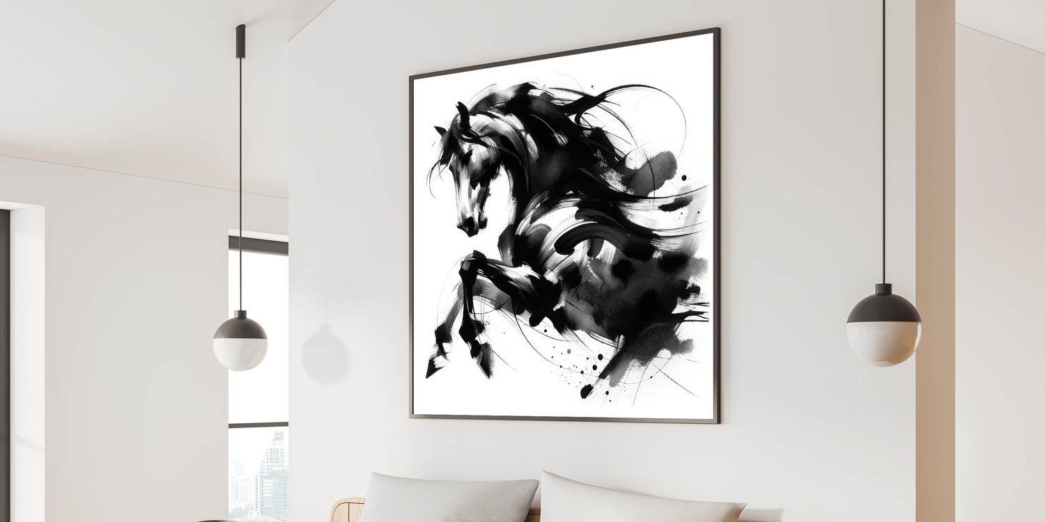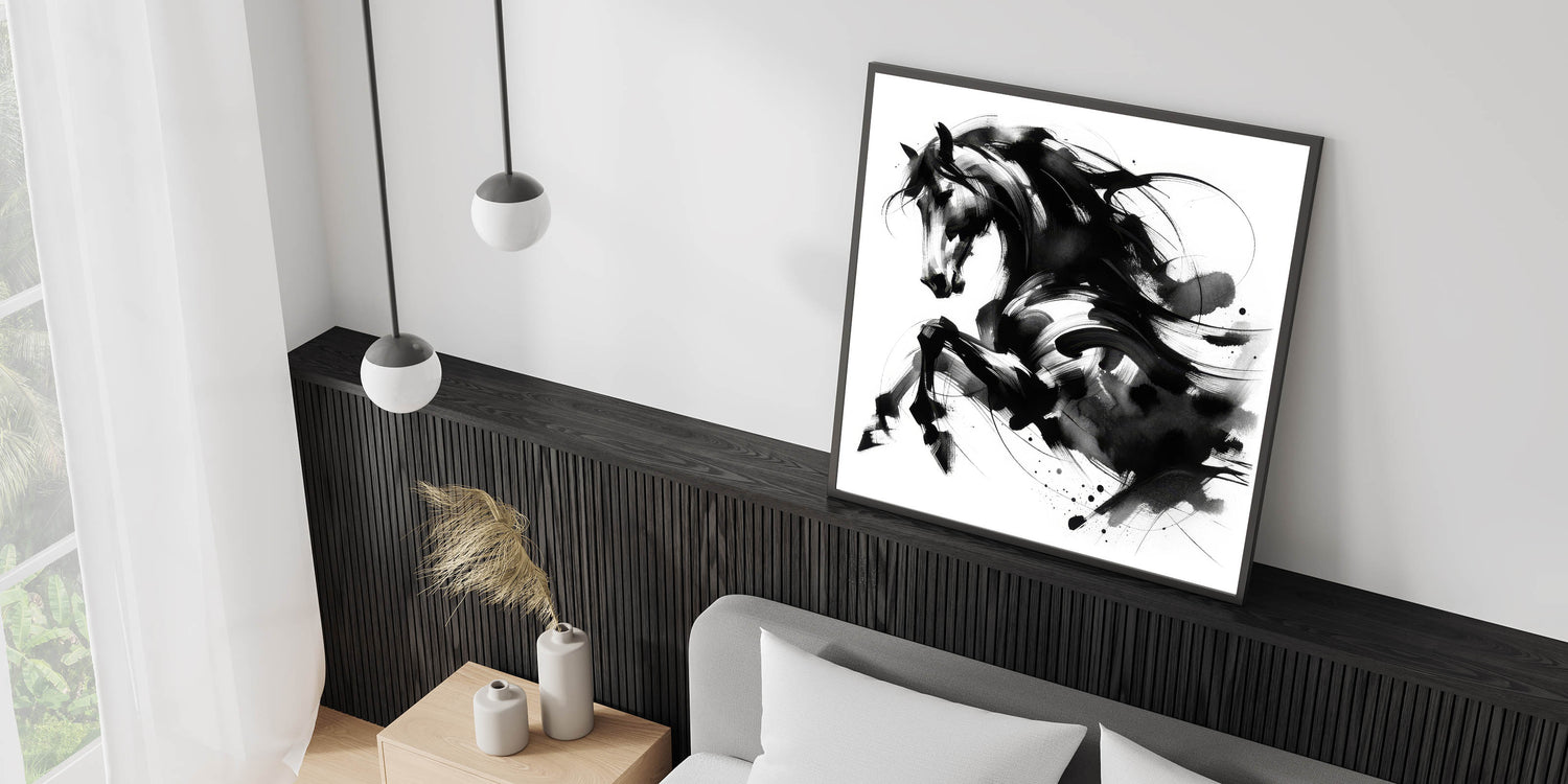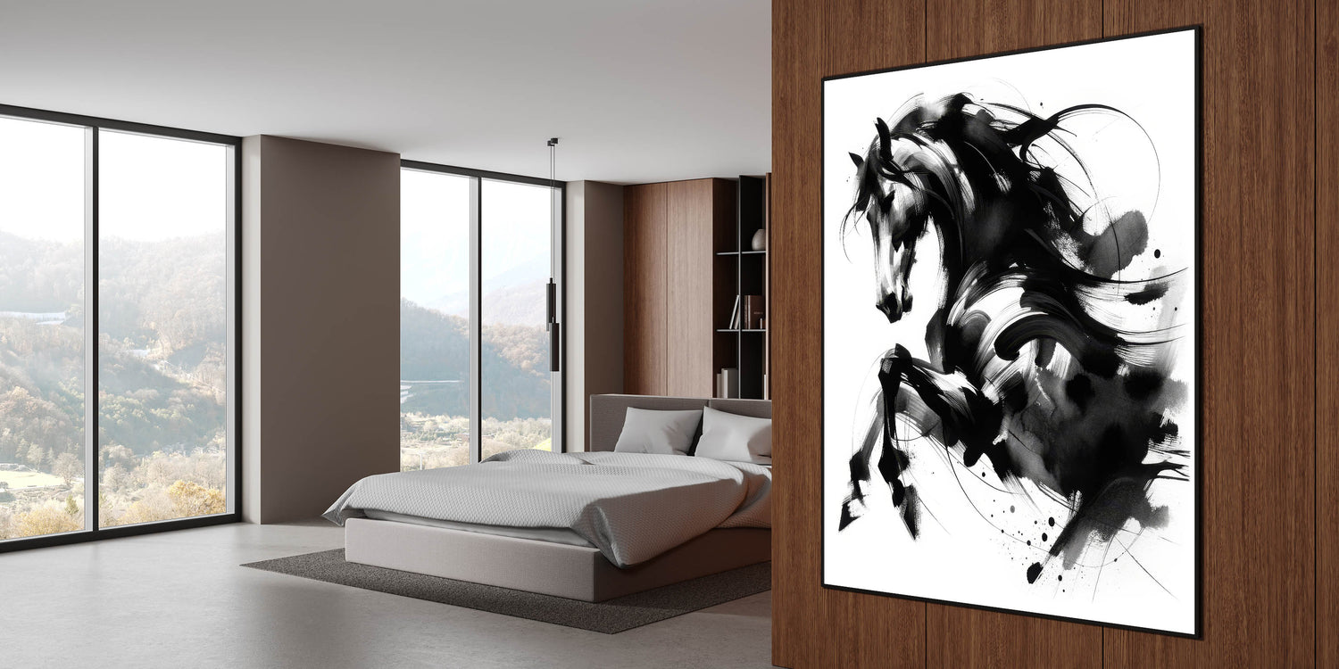 Abstract Black and White Horse Bedroom Wall Art – Framed & Canvas