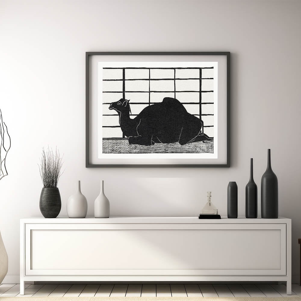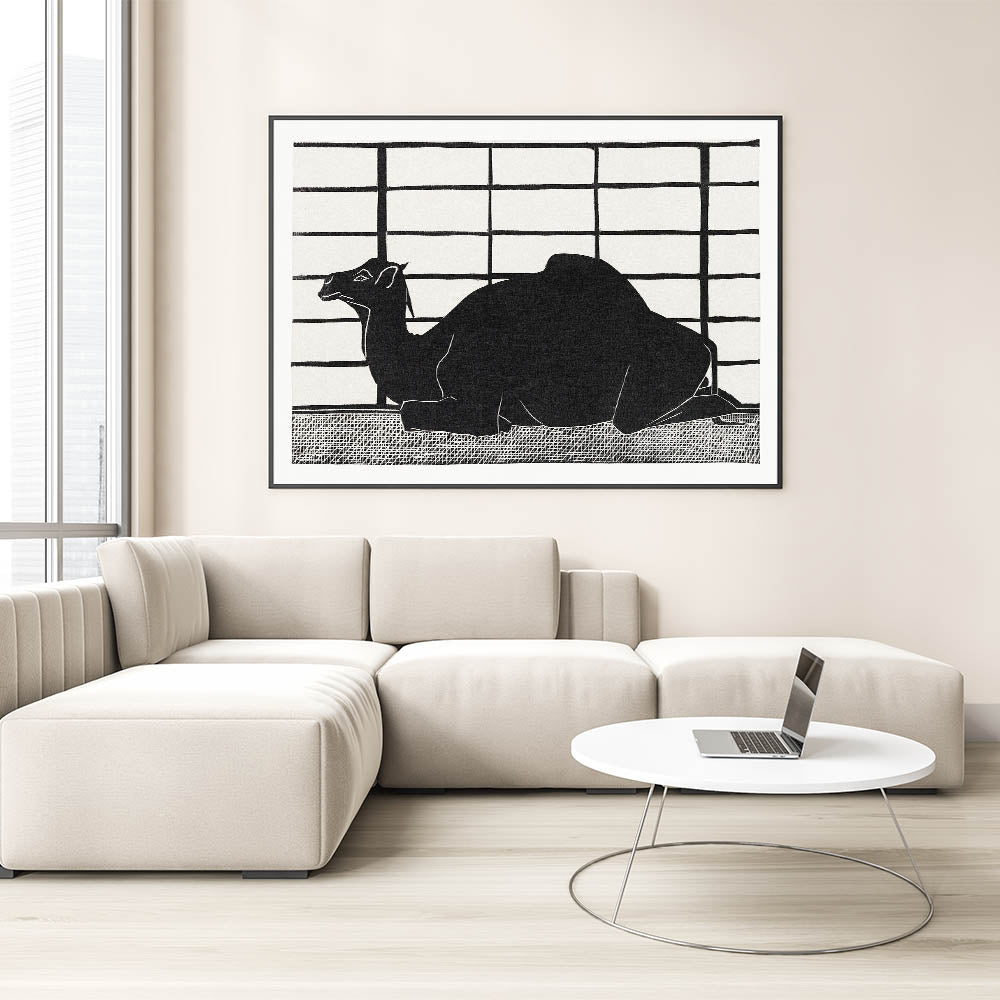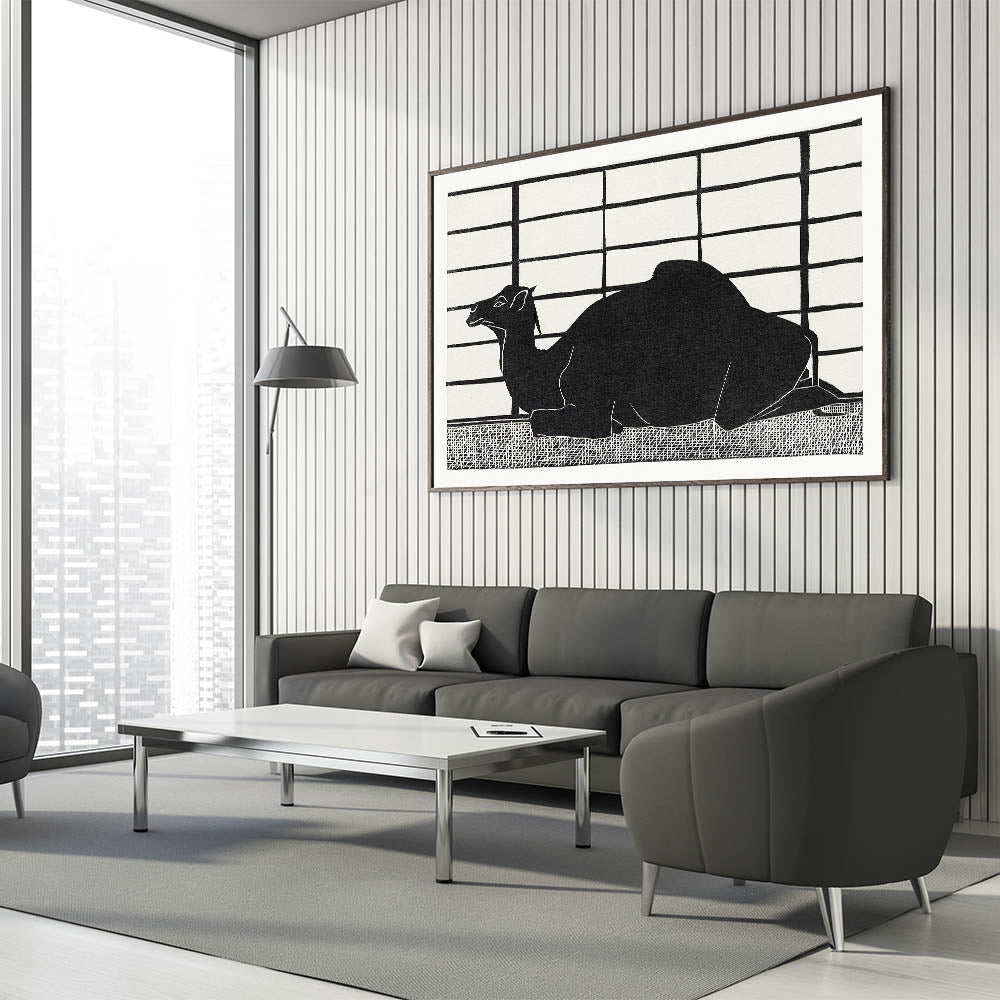 Add a striking visual to your decor with this bold, minimalist camel silhouette. This black and white modern wall art piece captures the elegance of a dromedary in an abstract, contemporary style. The high-contrast design, set against a grid-like background, emphasizes simplicity and sophistication, making it an ideal choice for minimalist modern decor. Perfect for those looking to add stylish wall art to their space, this unique artwork complements a variety of decor styles.