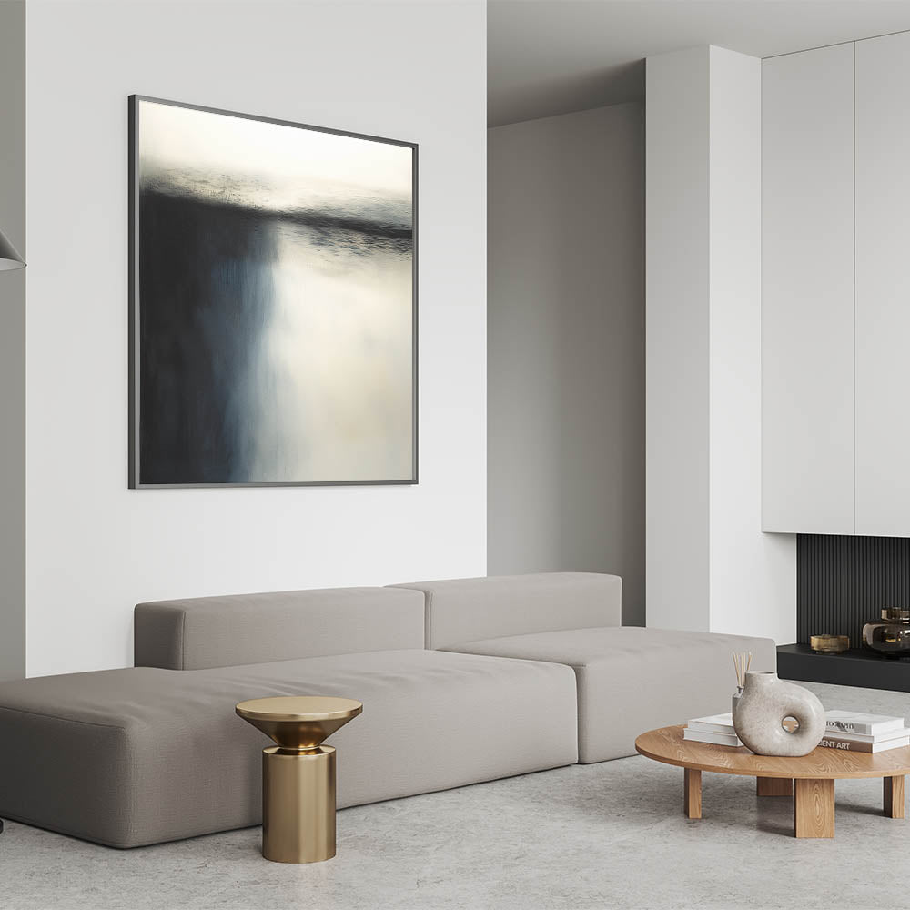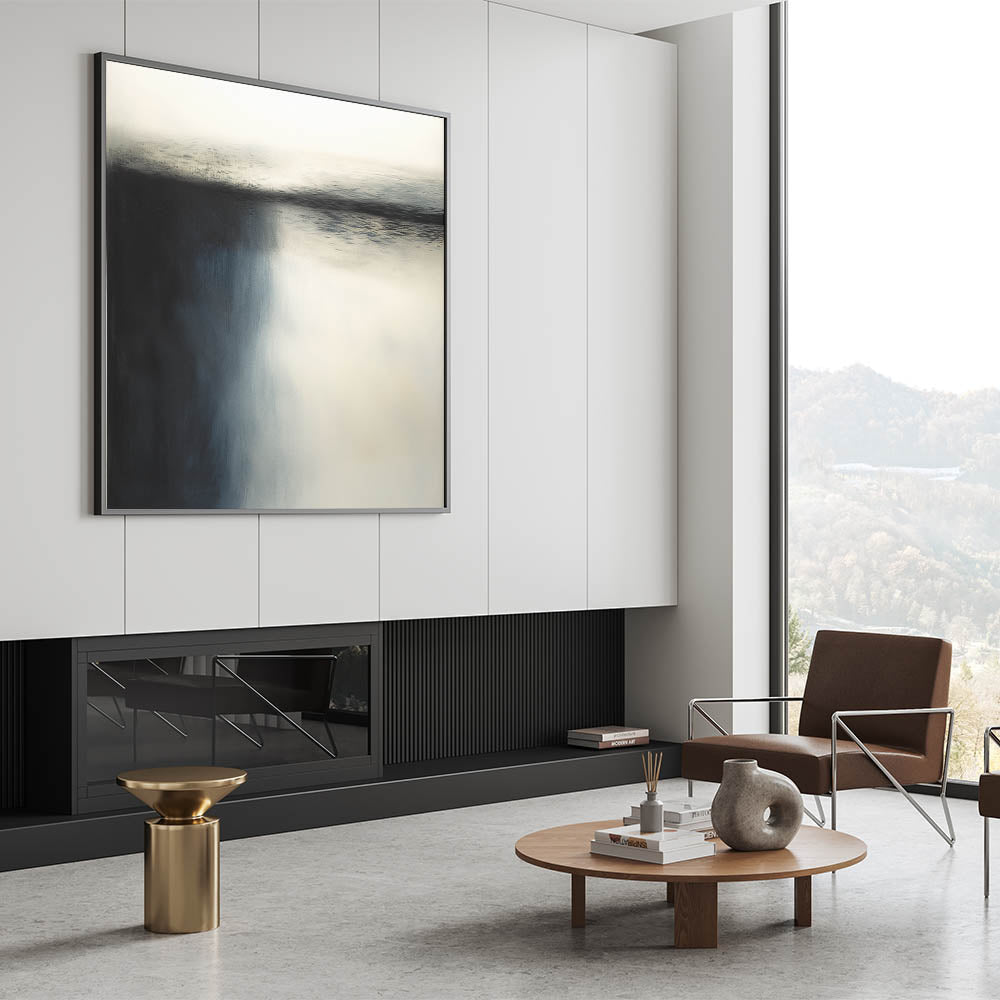 This modern abstract landscape art is perfect for those seeking a refined and minimalist statement piece. Its timeless monochromatic design complements a variety of decor styles, ensuring it remains a classic addition to your space.