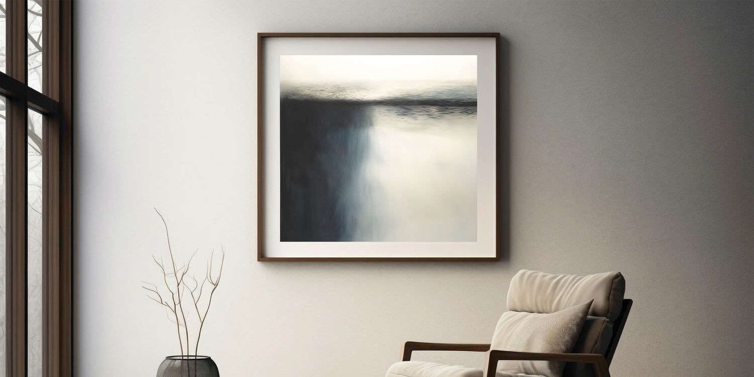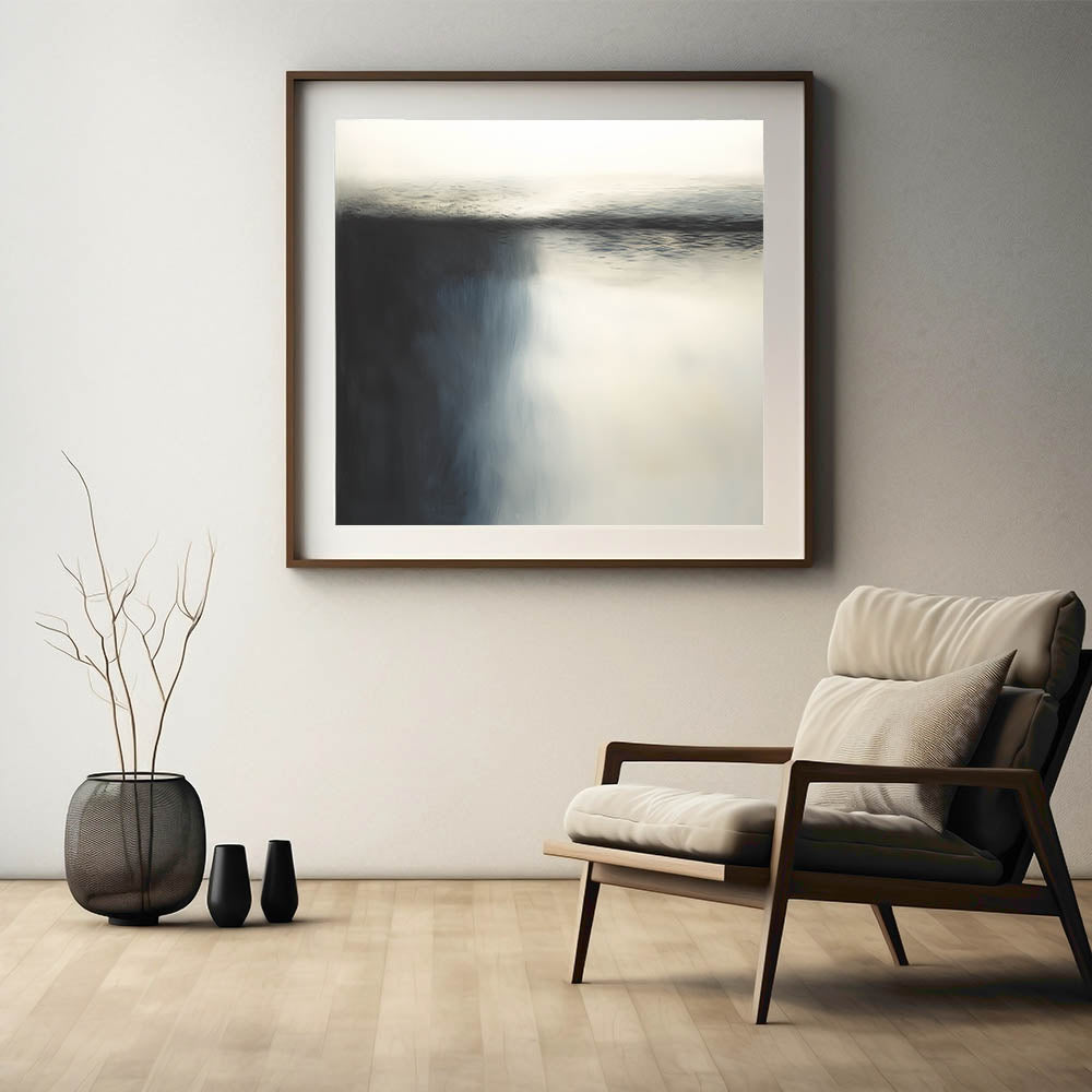 Introduce a dramatic yet serene vibe to your decor with this abstract landscape art, featuring a striking interplay of black and white tones. The contrast between light and shadow evokes the tranquil beauty of water reflecting a distant horizon. This minimalist piece is ideal for contemporary spaces, adding sophistication and depth to living rooms, bedrooms, or offices.