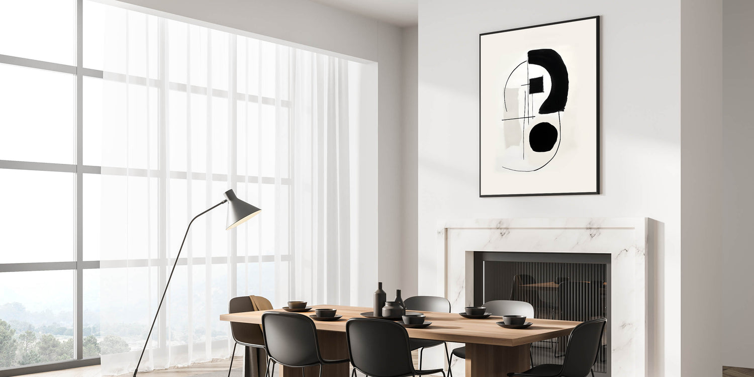 Create a modern statement with acrylic and canvas art for dining spaces, featuring a striking black and white abstract composition. This elegant dining room wall art combines geometric precision with expressive brushstrokes, making it a perfect addition to contemporary and minimalist interiors.