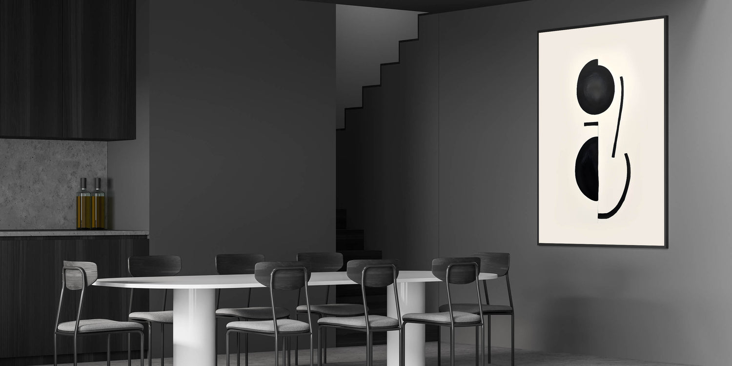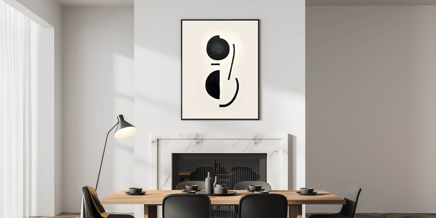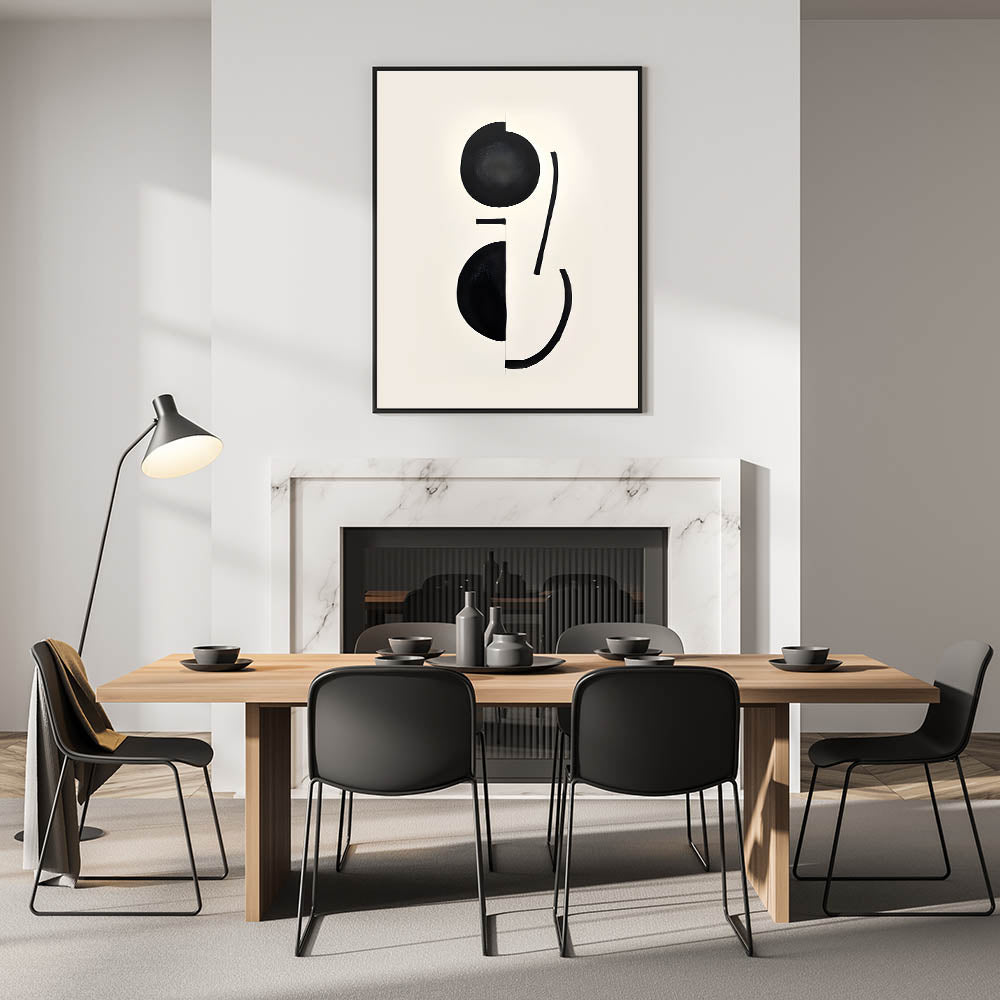 This contemporary dining art piece is an excellent addition to modern and minimalist interiors. With its monochrome aesthetic, it brings sophistication and balance to your dining area while complementing any stylish setting.