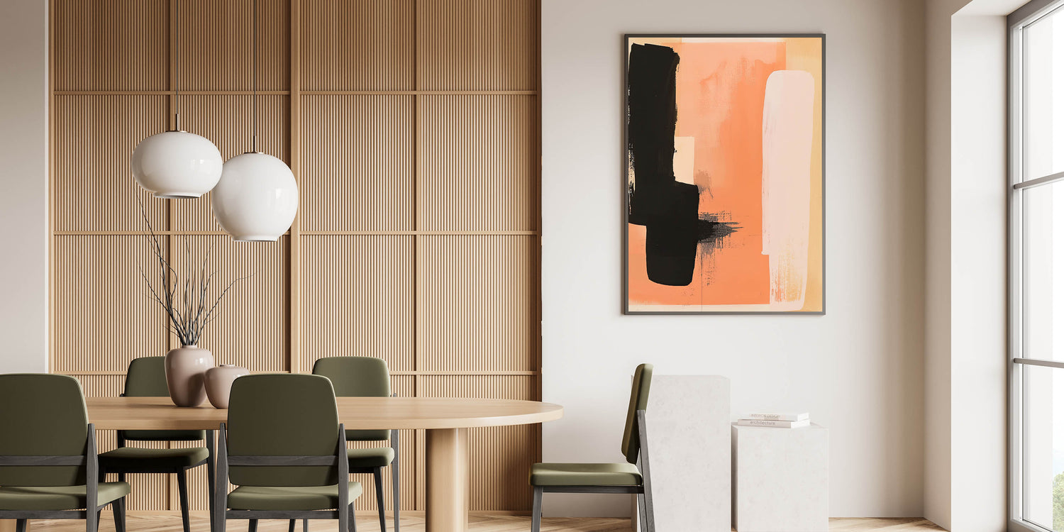 Acrylic Dining Room Artwork – Bold Black and Peach Abstract