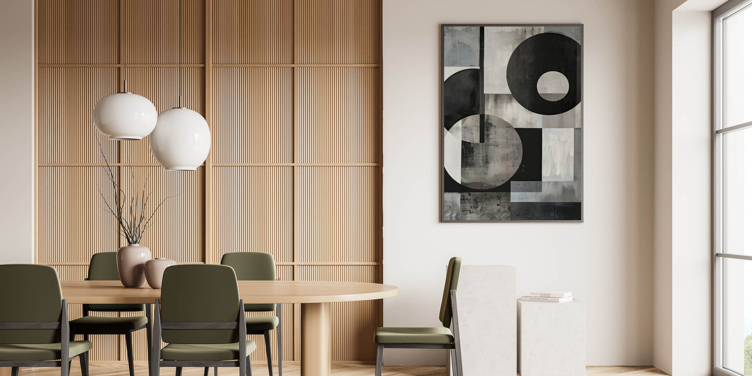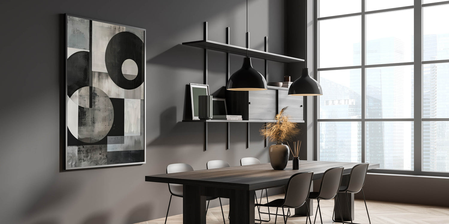 Acrylic Dining Room Artwork – Geometric Monochrome Print