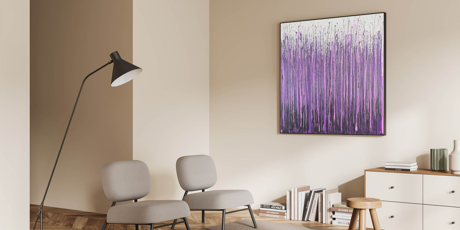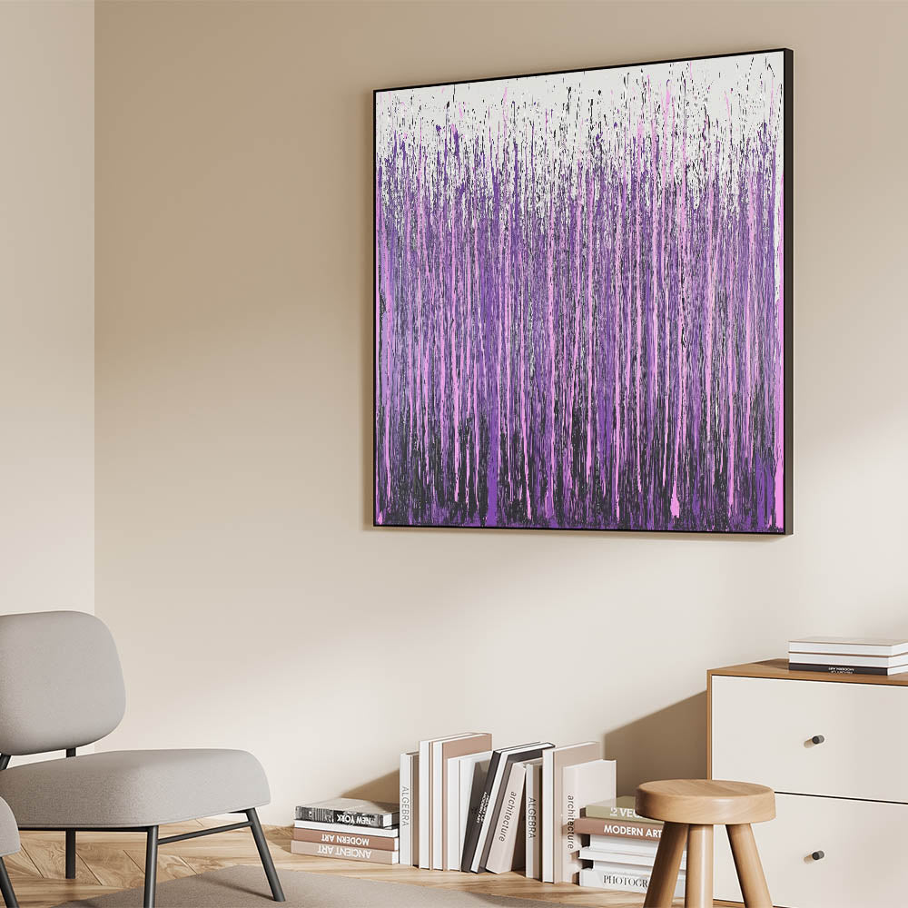 Elevate your décor with this modern floral abstract, designed to inspire and energize any room. Whether as a personal addition or a thoughtful gift, Amethyst Cascade offers timeless elegance and bold artistry.