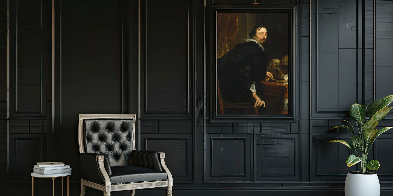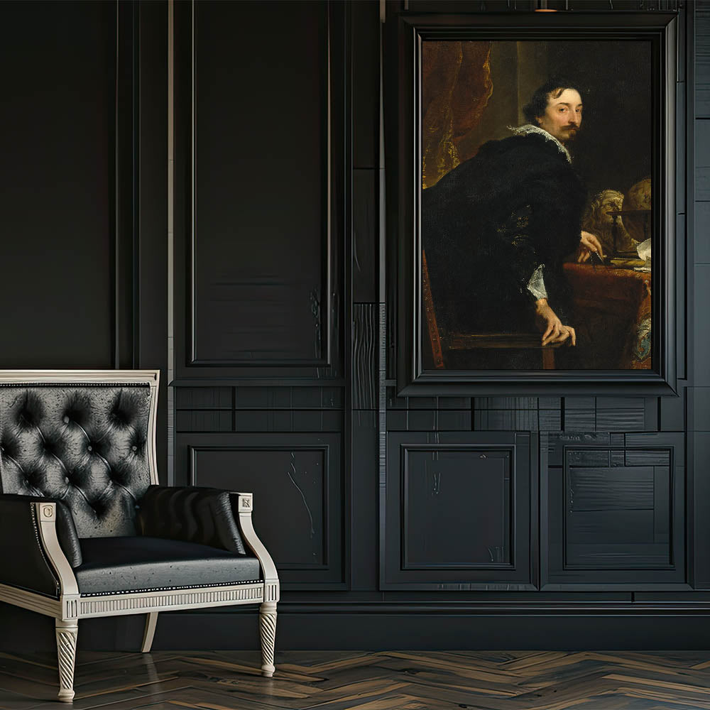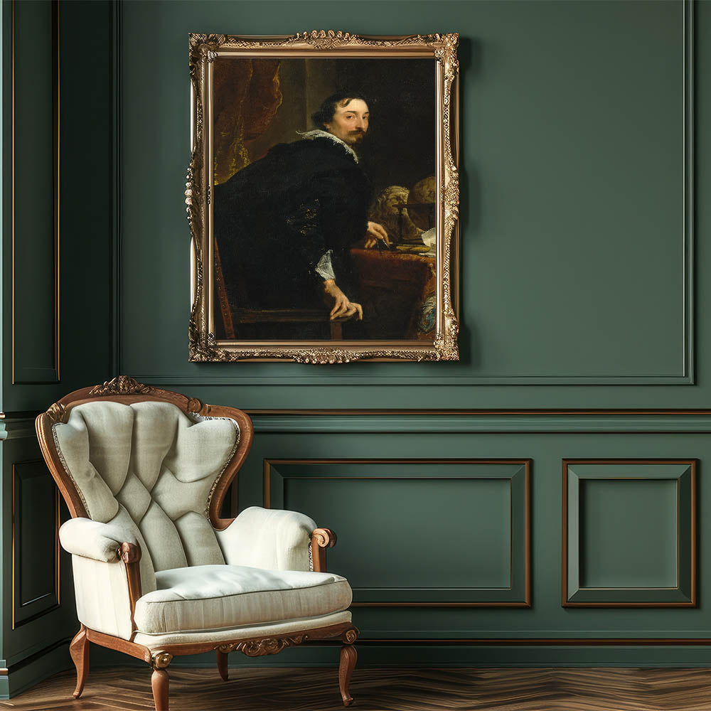 Elevate your décor with this remarkable Baroque portrait depicting a distinguished gentleman in an opulent setting. The painting features rich textures, dramatic lighting, and intricate details, with the subject posed near a globe and symbolic artifacts, reflecting intellect and exploration. The deep tones and careful brushwork capture the artistic mastery of the Baroque era, making it an ideal choice for lovers of historical art and timeless elegance.