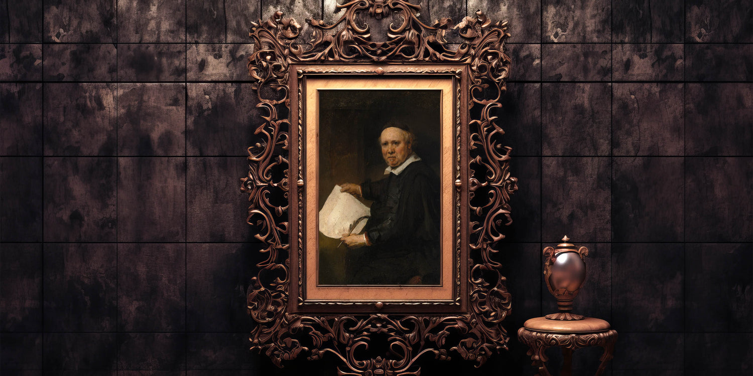 - Authentic Baroque portrait showcasing a scholar with a quill and manuscript